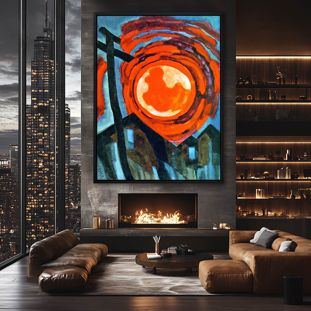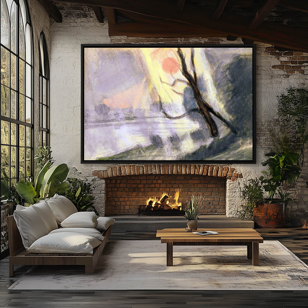 Abstract Landscape Painting with the Sun Shinning through the Clouds