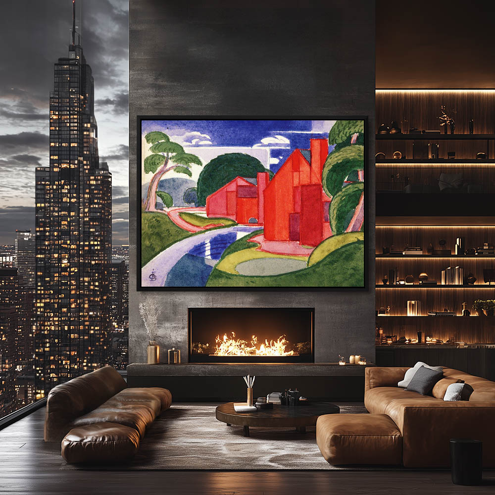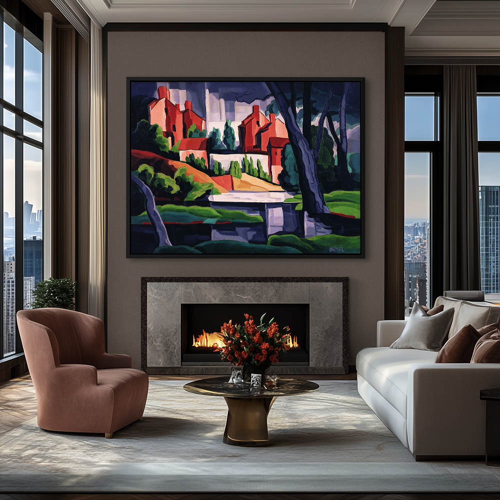 Abstract Landscape Painting with Trees and a Village in the Distance