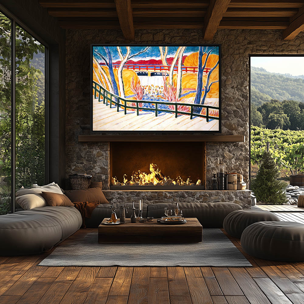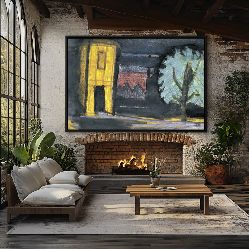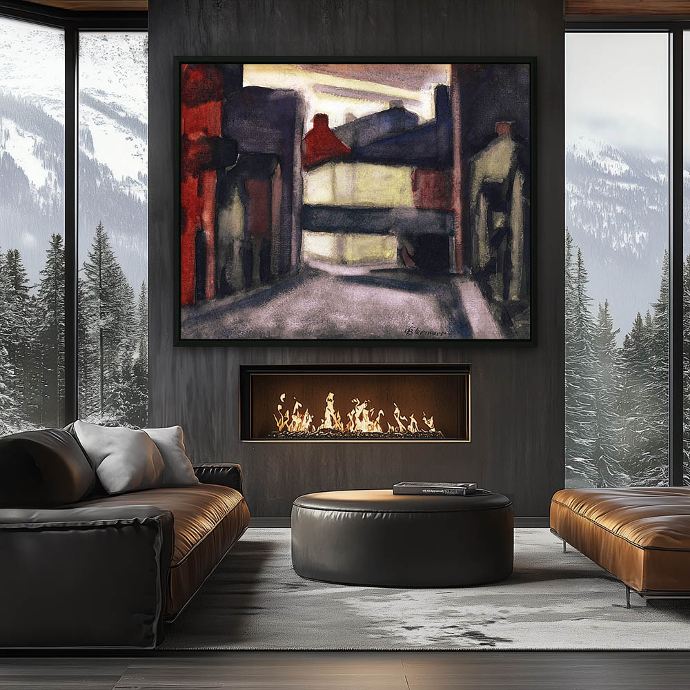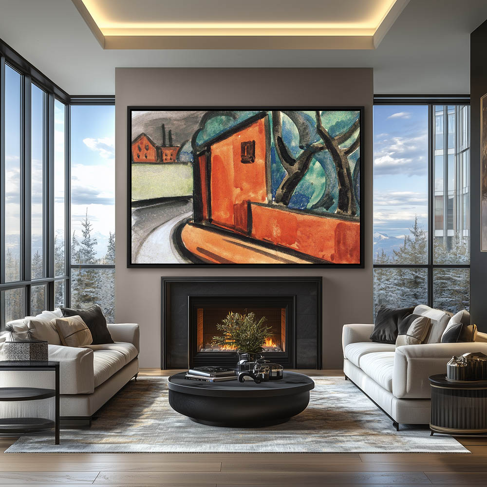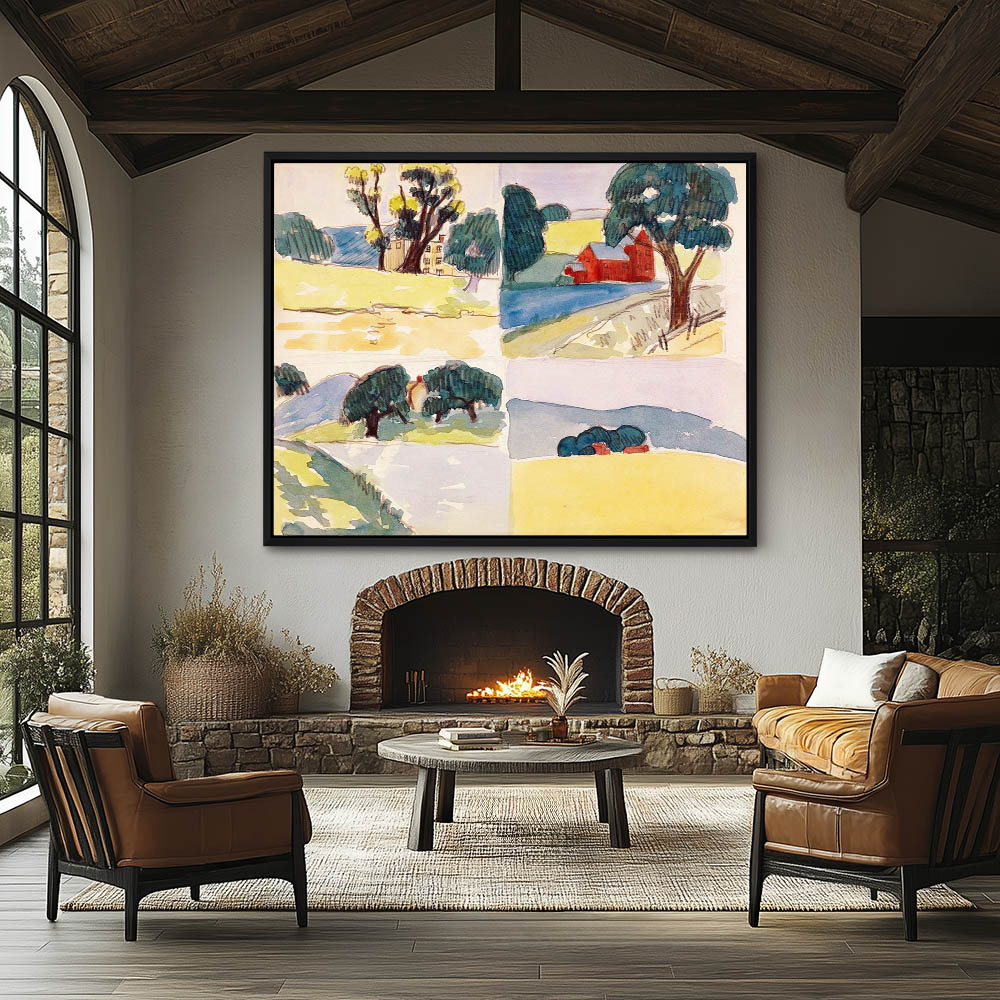 Abstract Landscape Painting of a Farm with a Barn and Grain Silo
