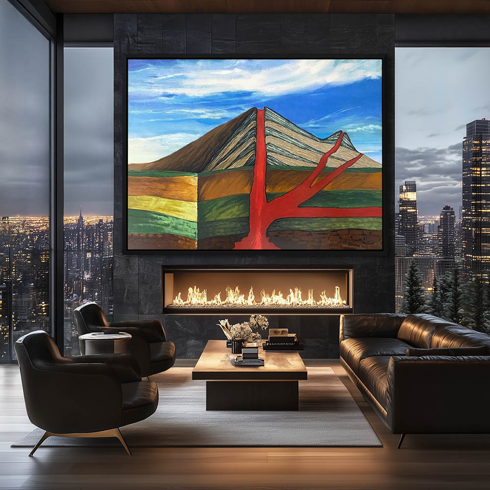 Abstract Landscape Painting of a Volcano