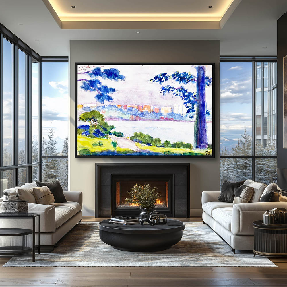 From $29.97Abstract Landscape Painting with a Village and a Mountains