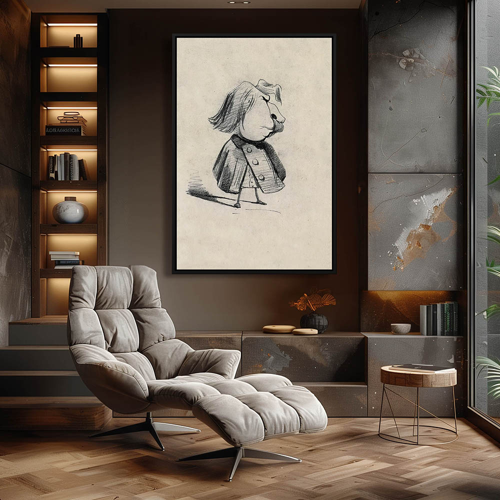 Vintage Caricature Drawing of a Hunter and His Dog