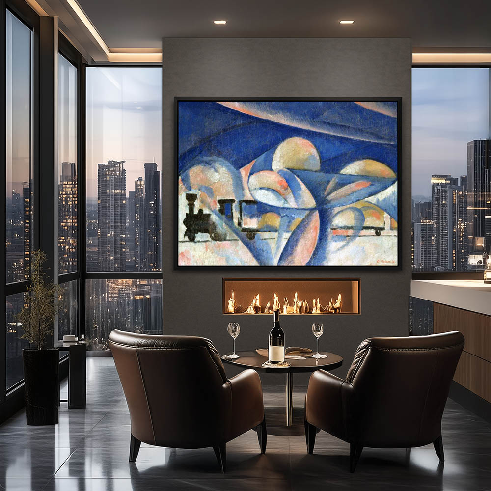 Vintage Compositional Painting with a Train