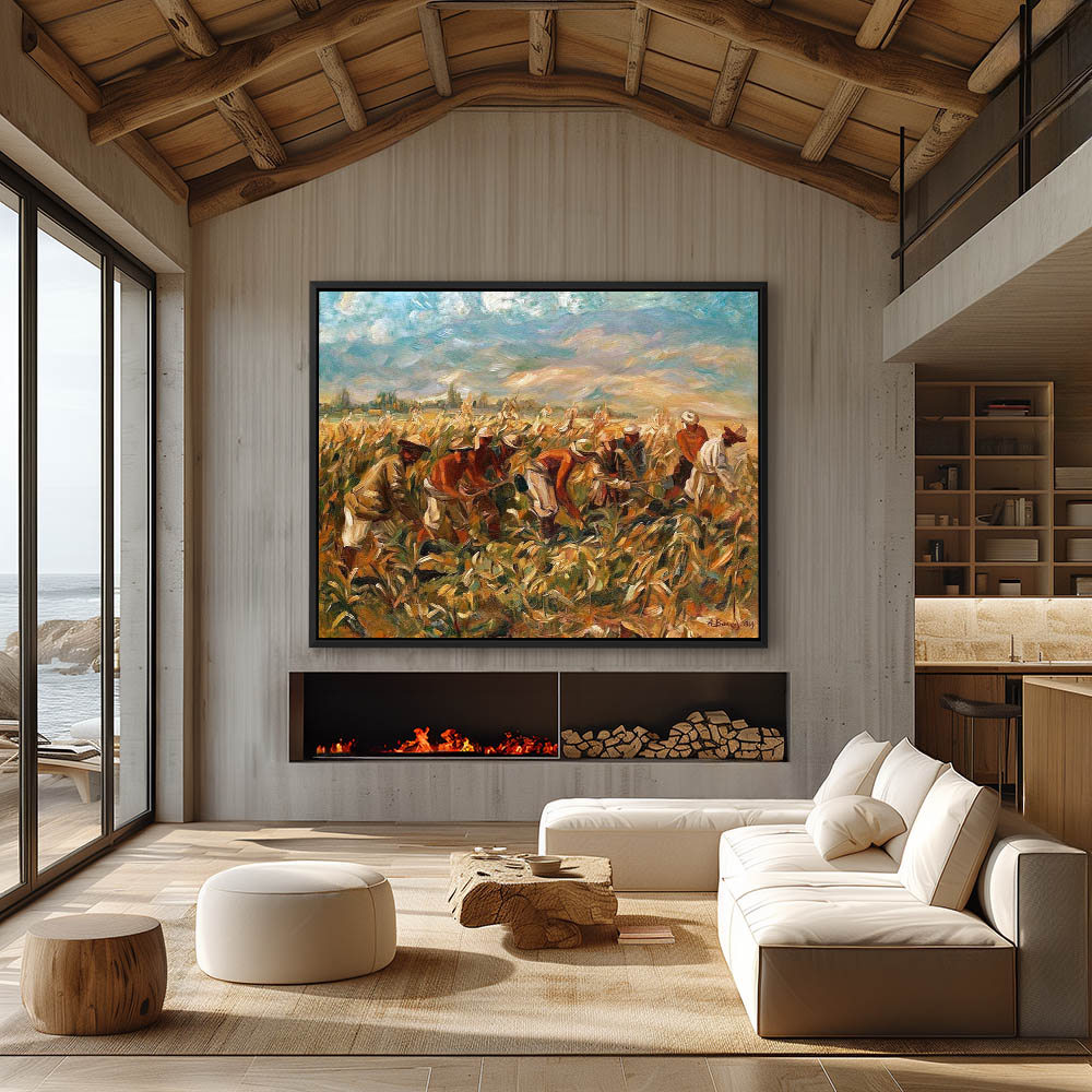 Abstract Painting of Workers Picking Corn