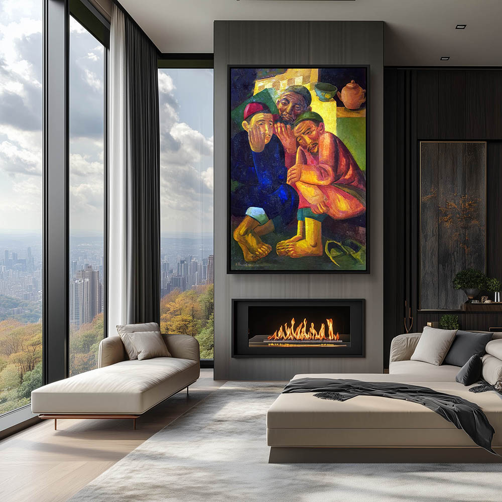 Abstract Painting of Figures in Conversation