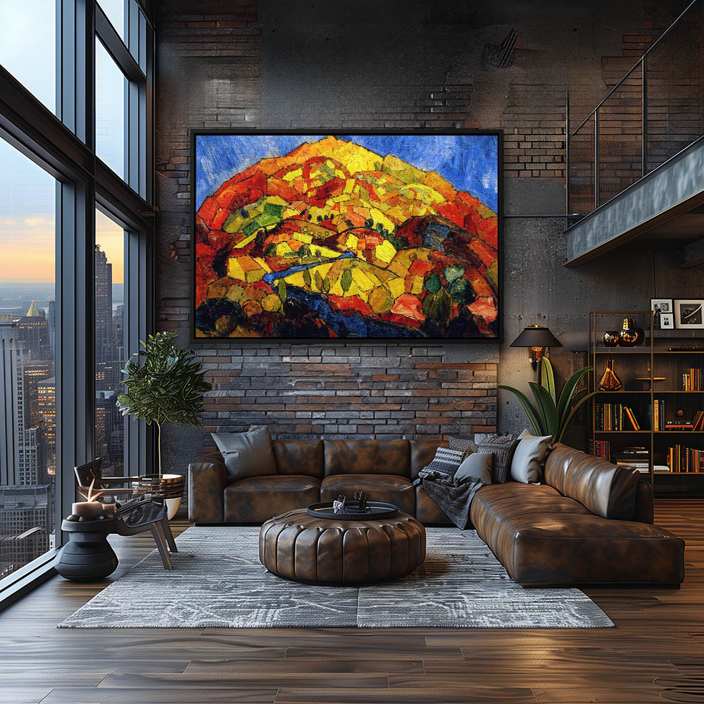 Abstract Landscape Painting with a Village at the Foot of a Mountain