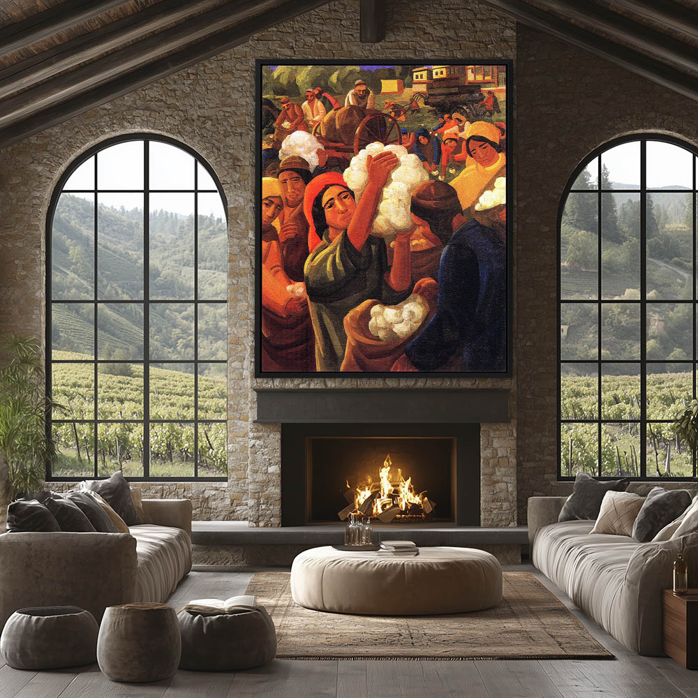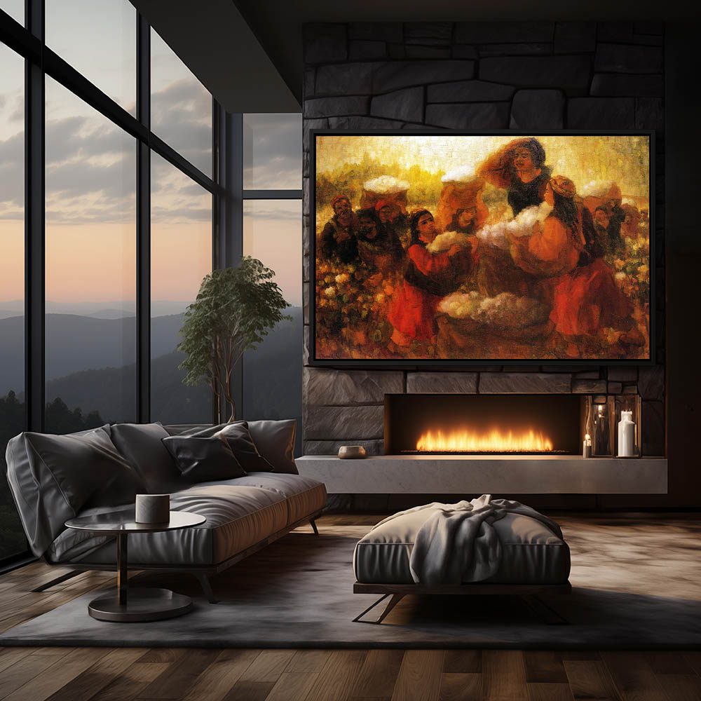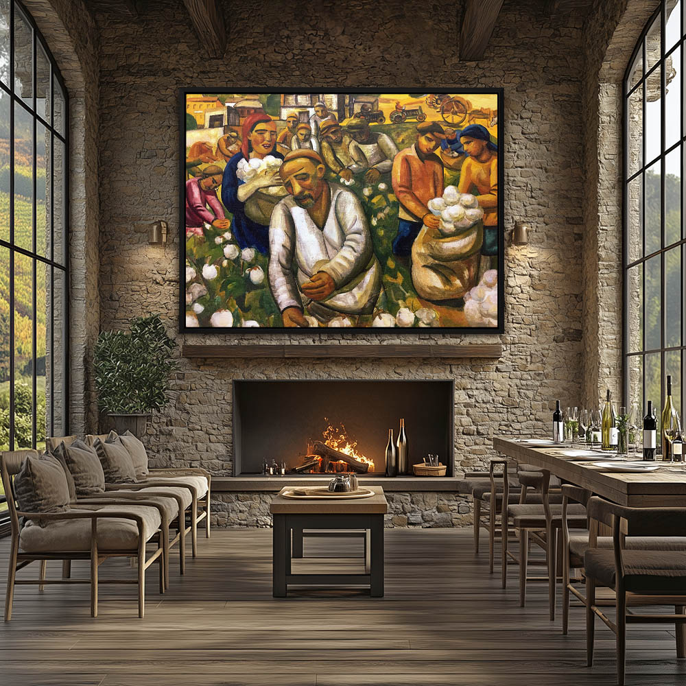 Abstract Painting of Figures Harvesting Cotton