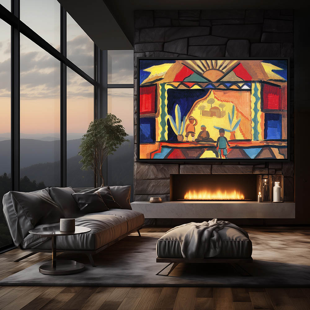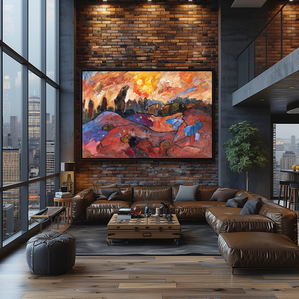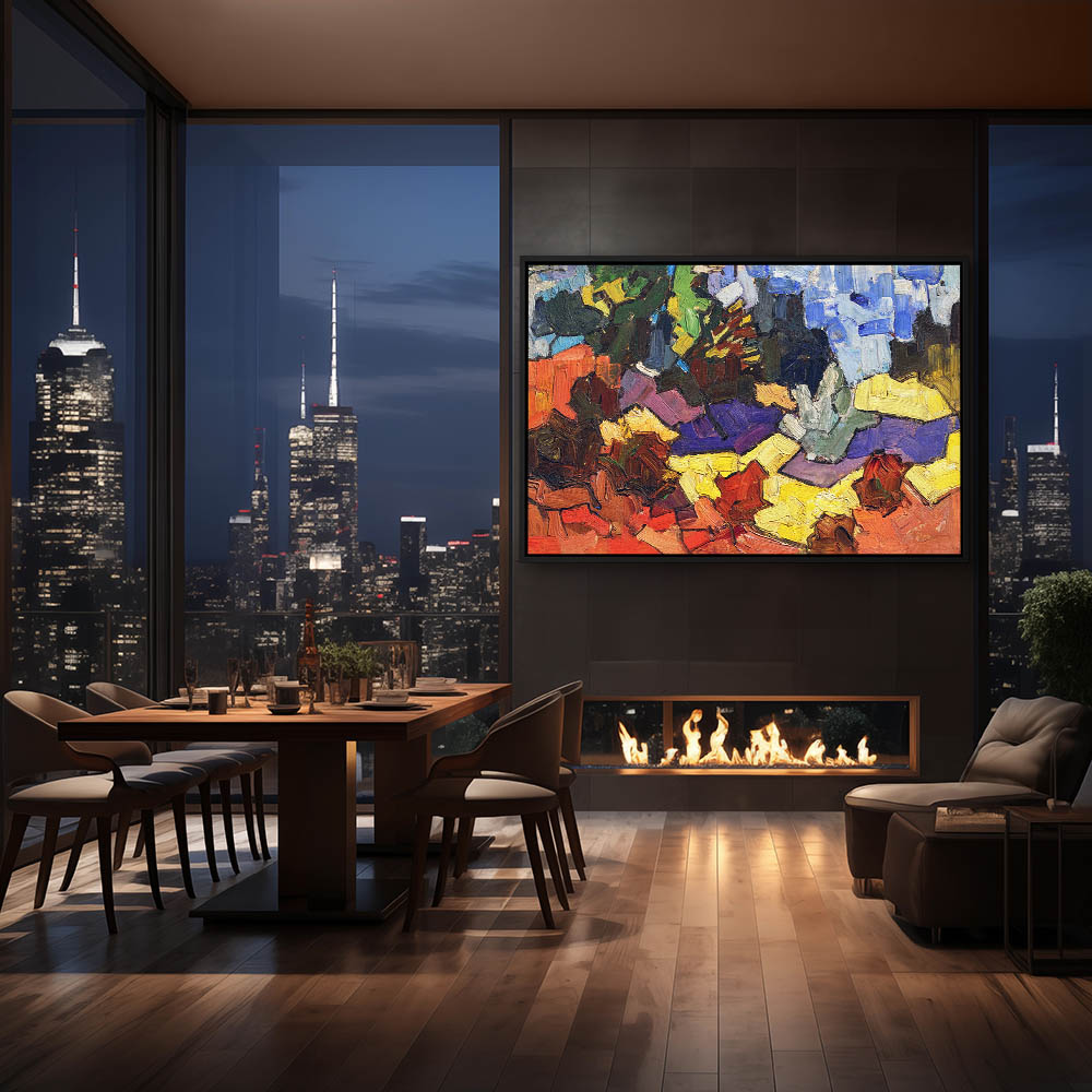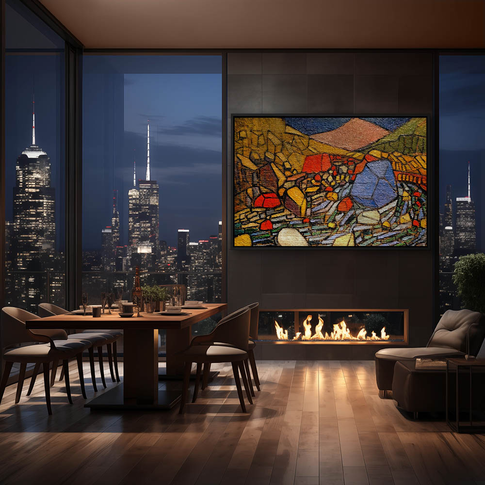 Abstract Landscape Painting with Mountains in Multicolors