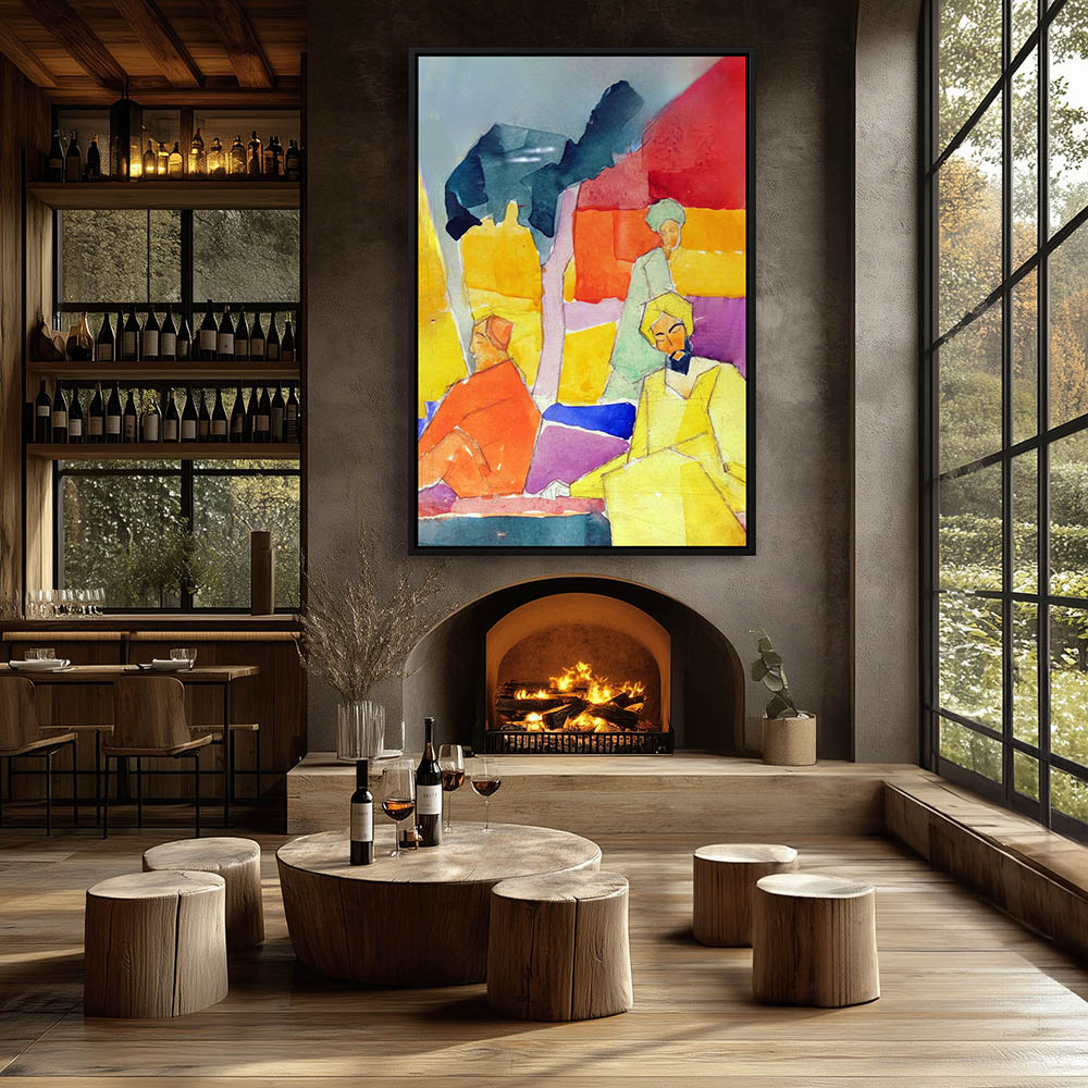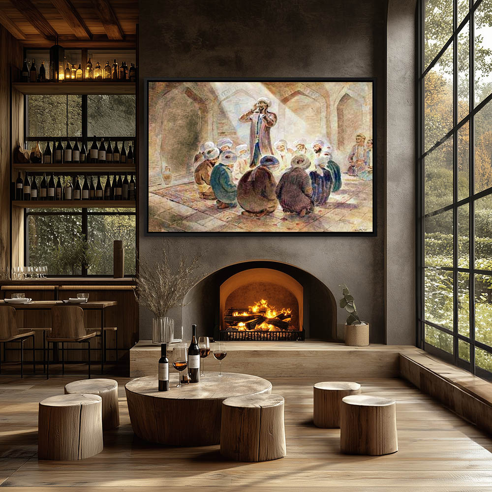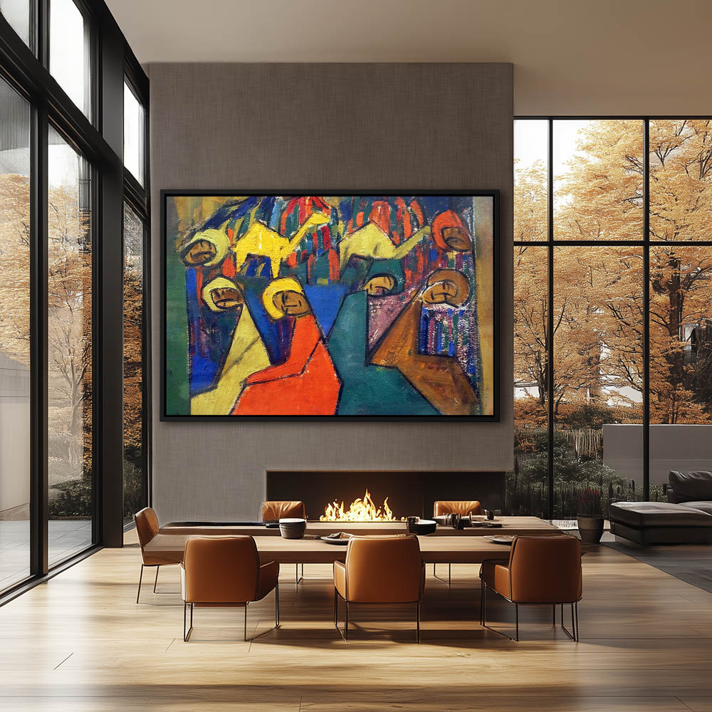 Vintage Abstract Painting of the Local Blacksmith with a Horse