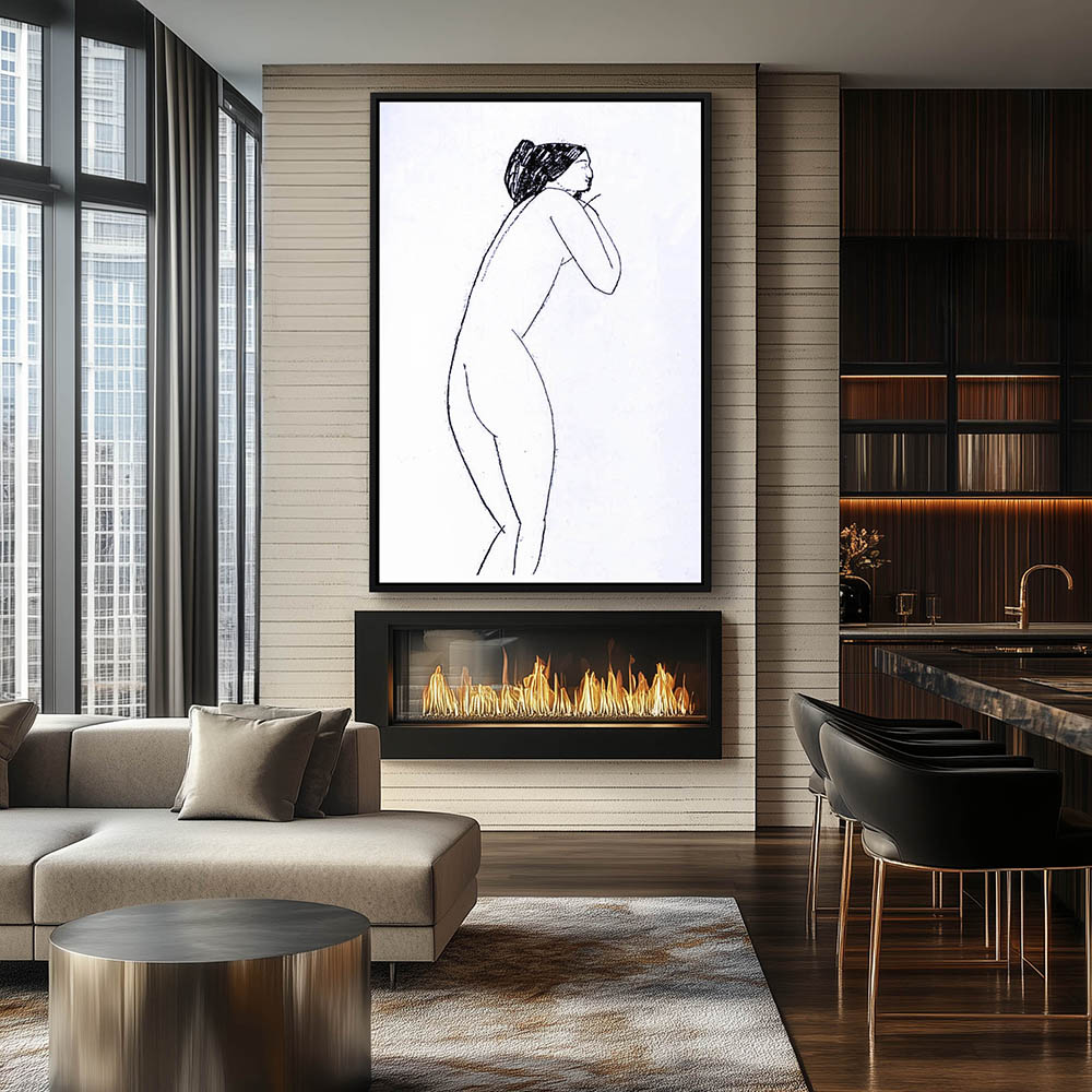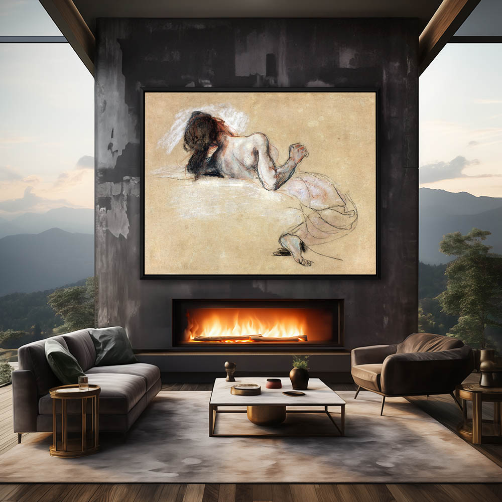 Vintage Nude Drawing of a Woman from the Back