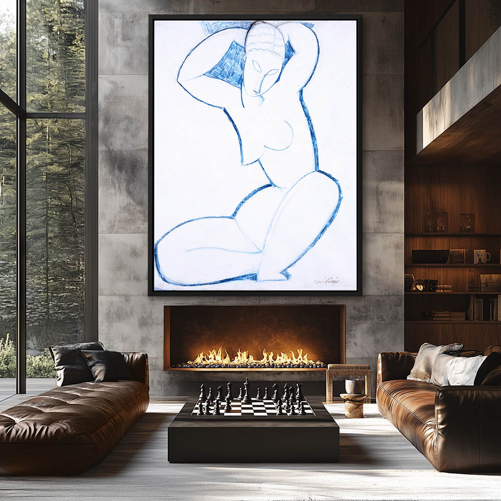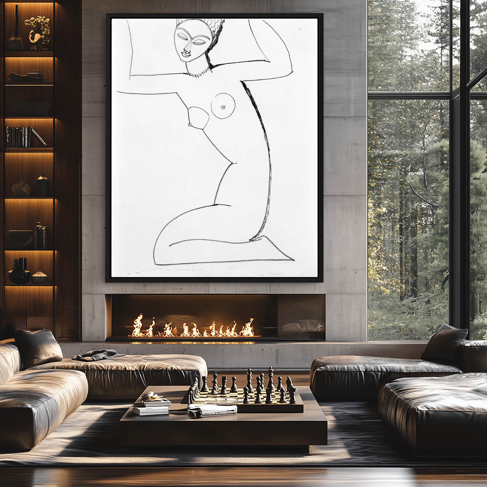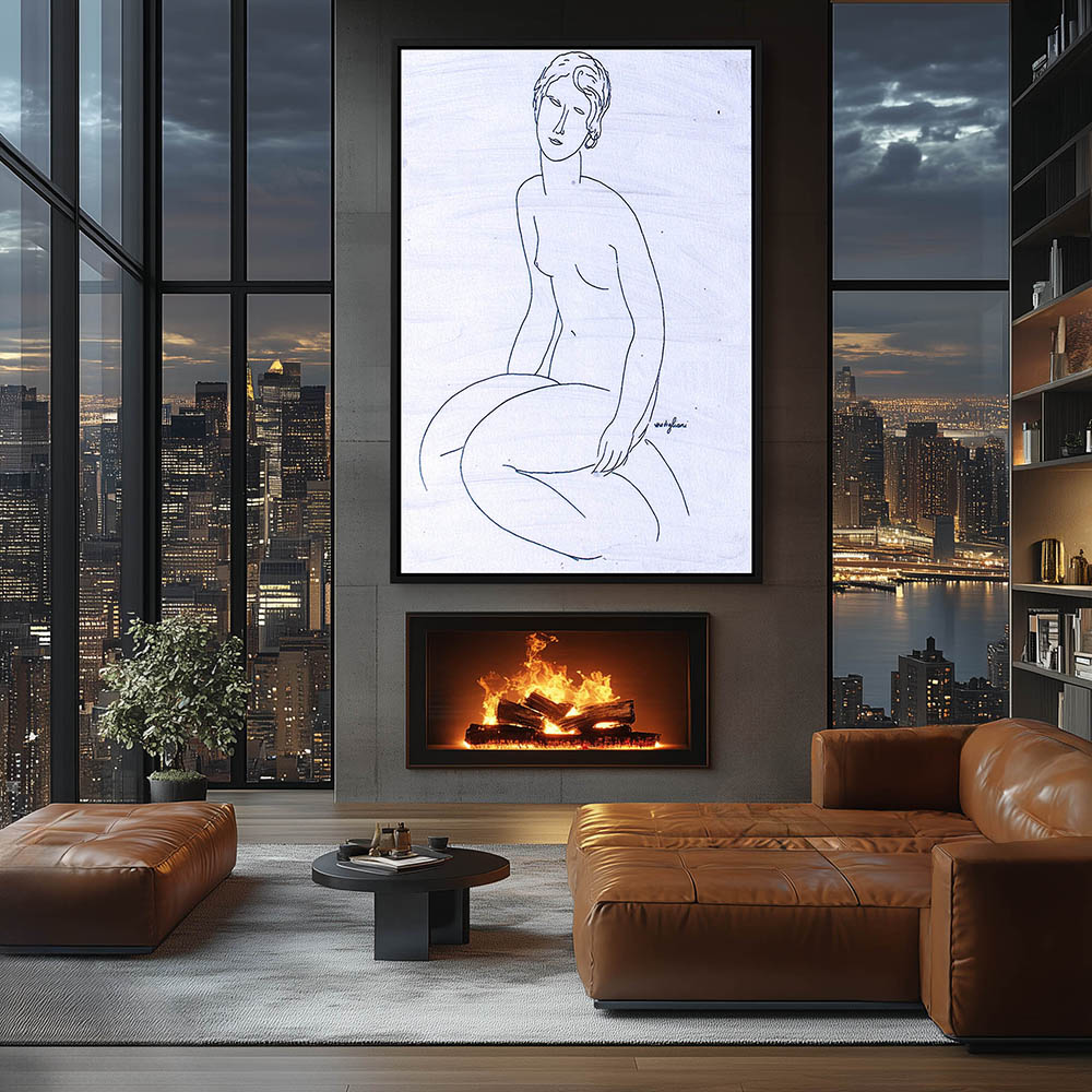 Figurative Drawing of a Nude Woman Sitting