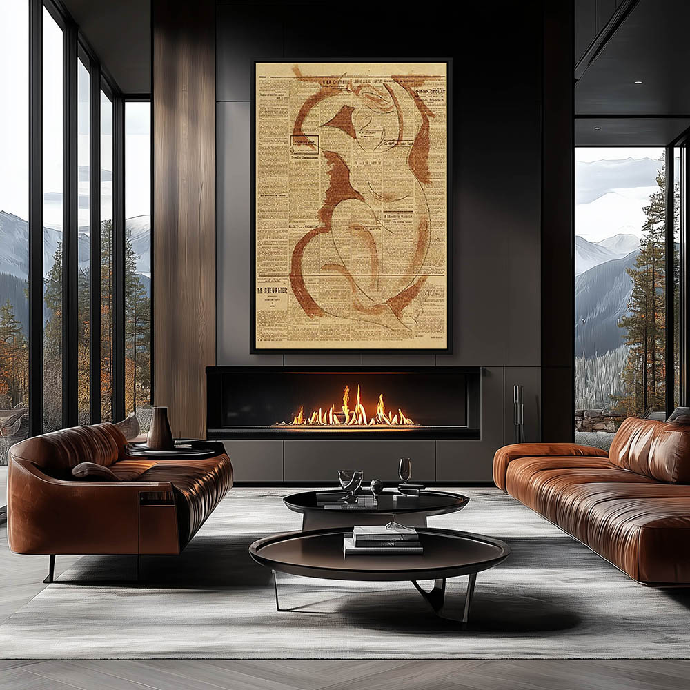 Vintage Figurative Drawing of a Nude Woman Laying on the Bed