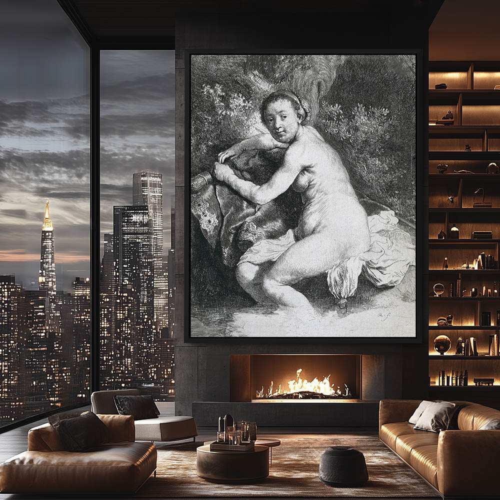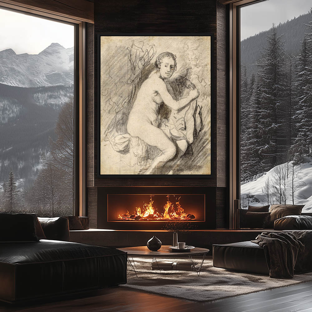 Portrait Nude Drawing of the Artist Wife Taking a Bath