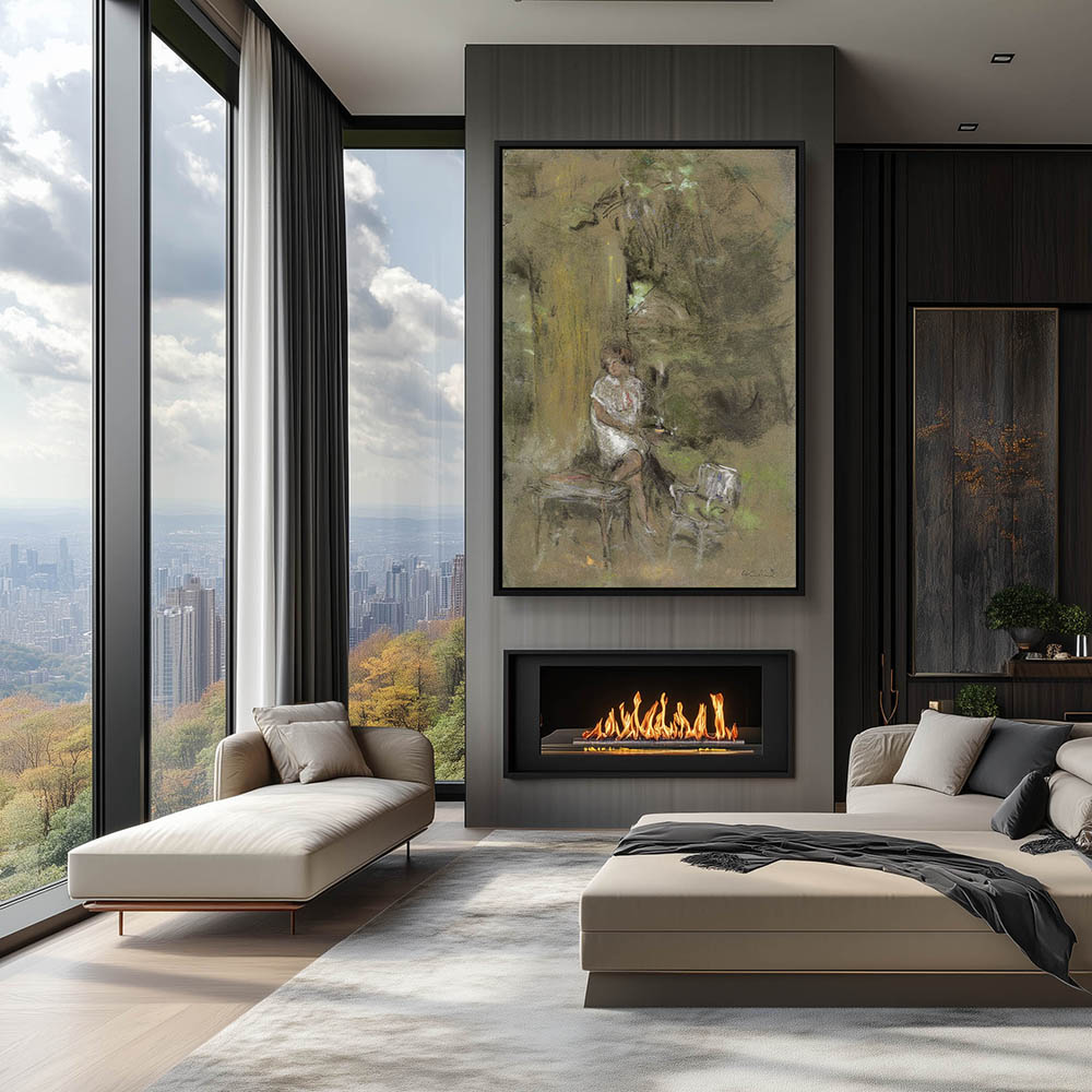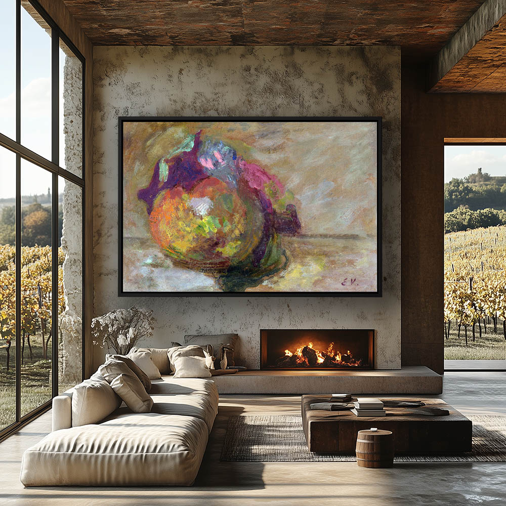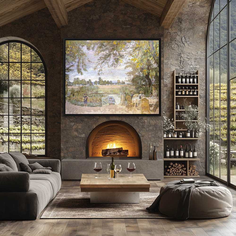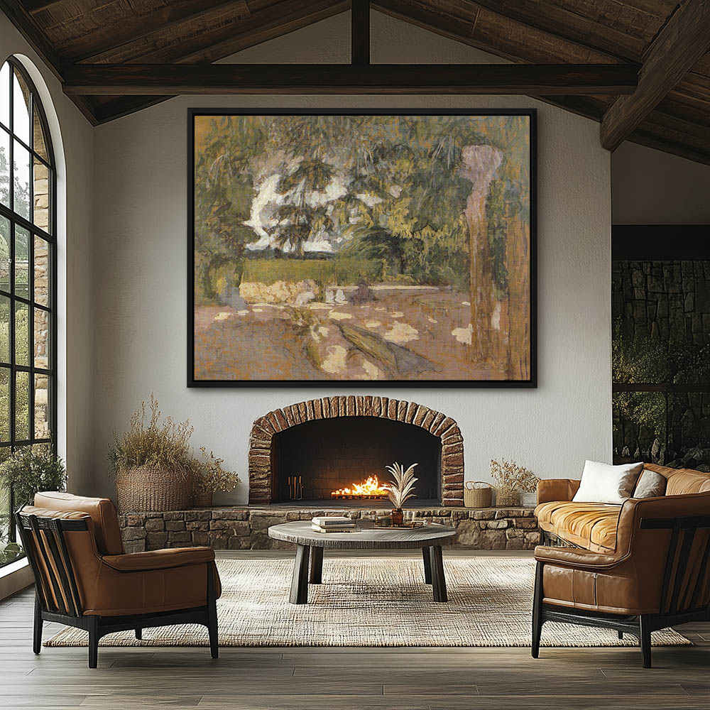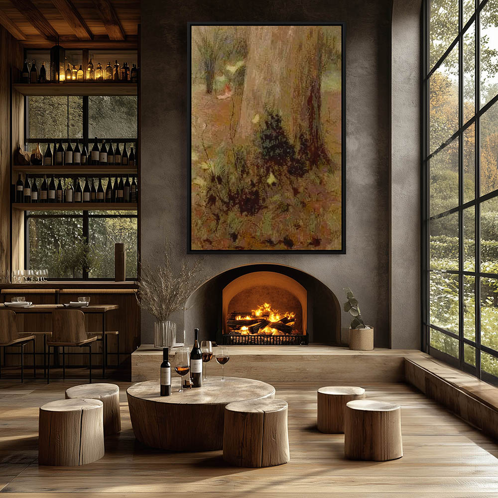 Abstract landscape of the base of a large tree with shrubs and flowers