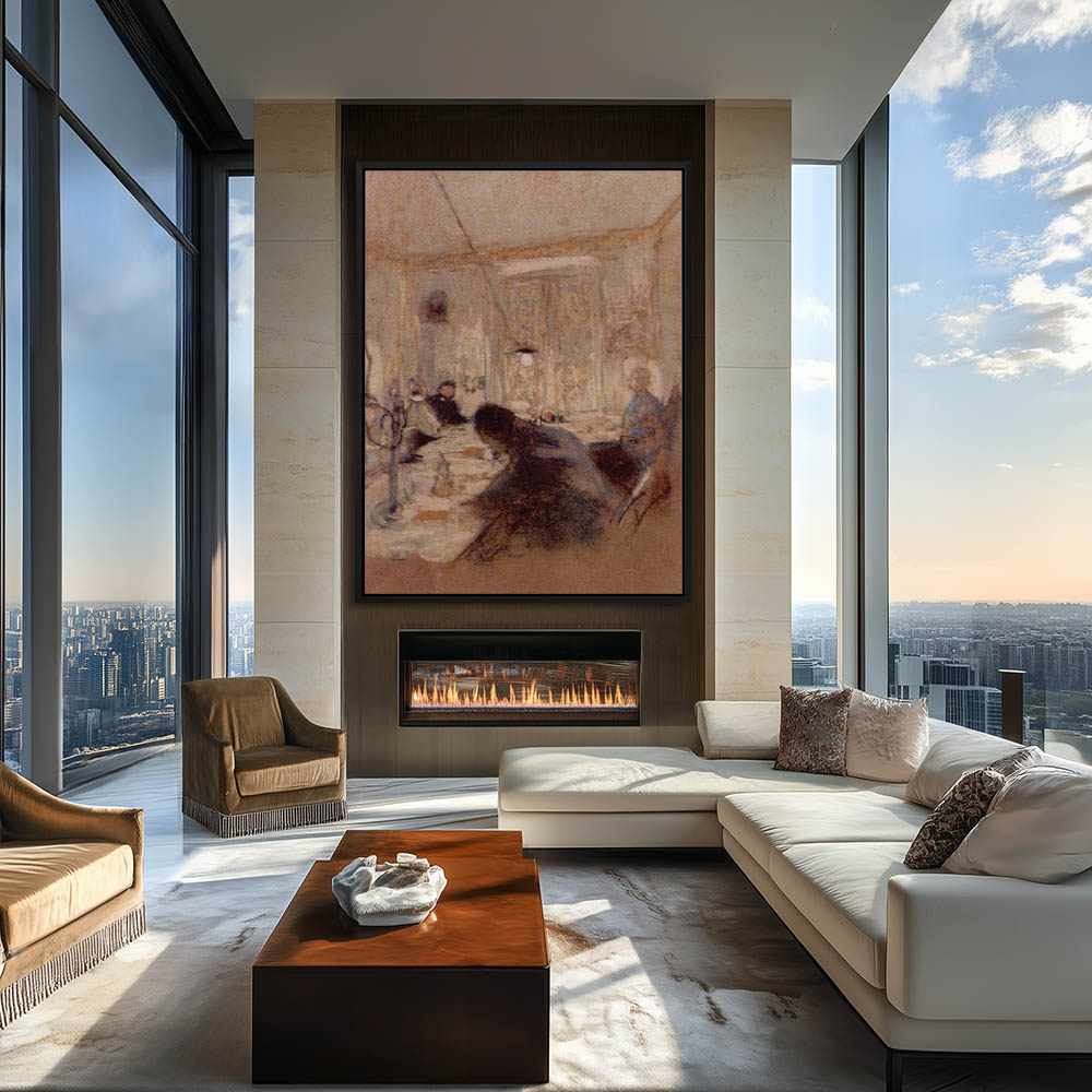 Bearded man at his desk with an open book and low light from an unseen lamp to the left.