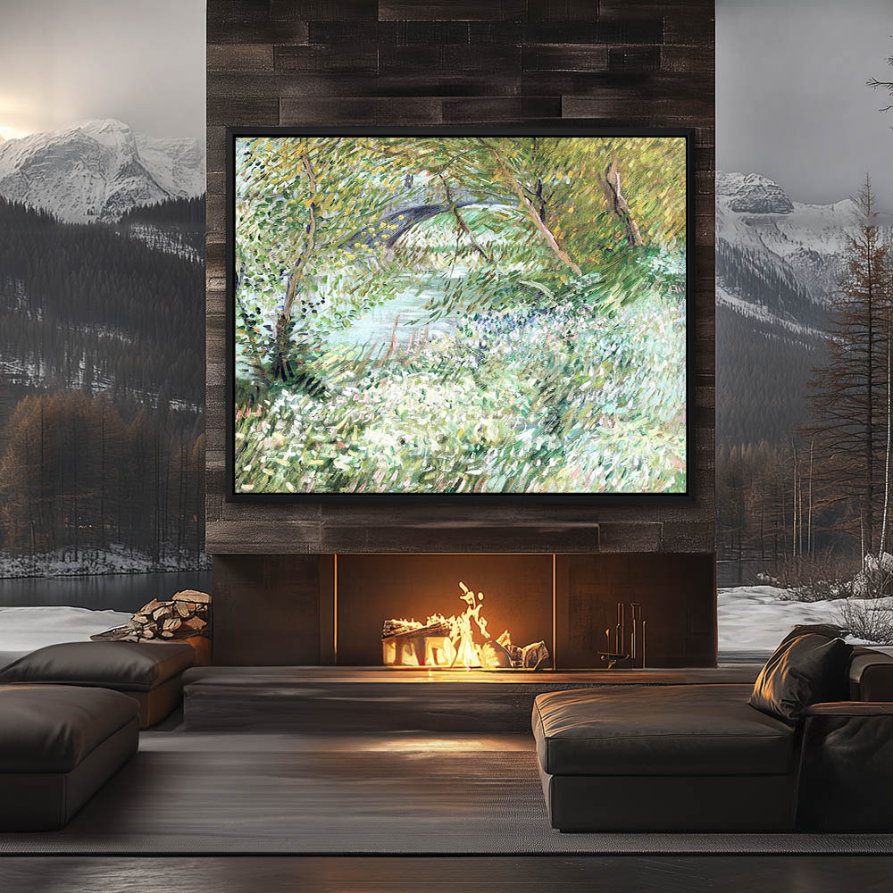 Impressionist Landscape Painting of a River Bank in Spring