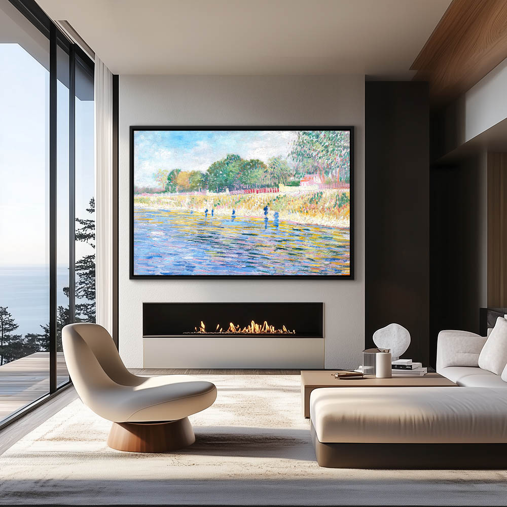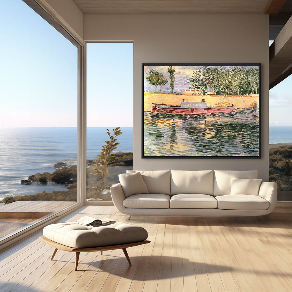 Impressionist Landscape Painting of a River Bank and Boat