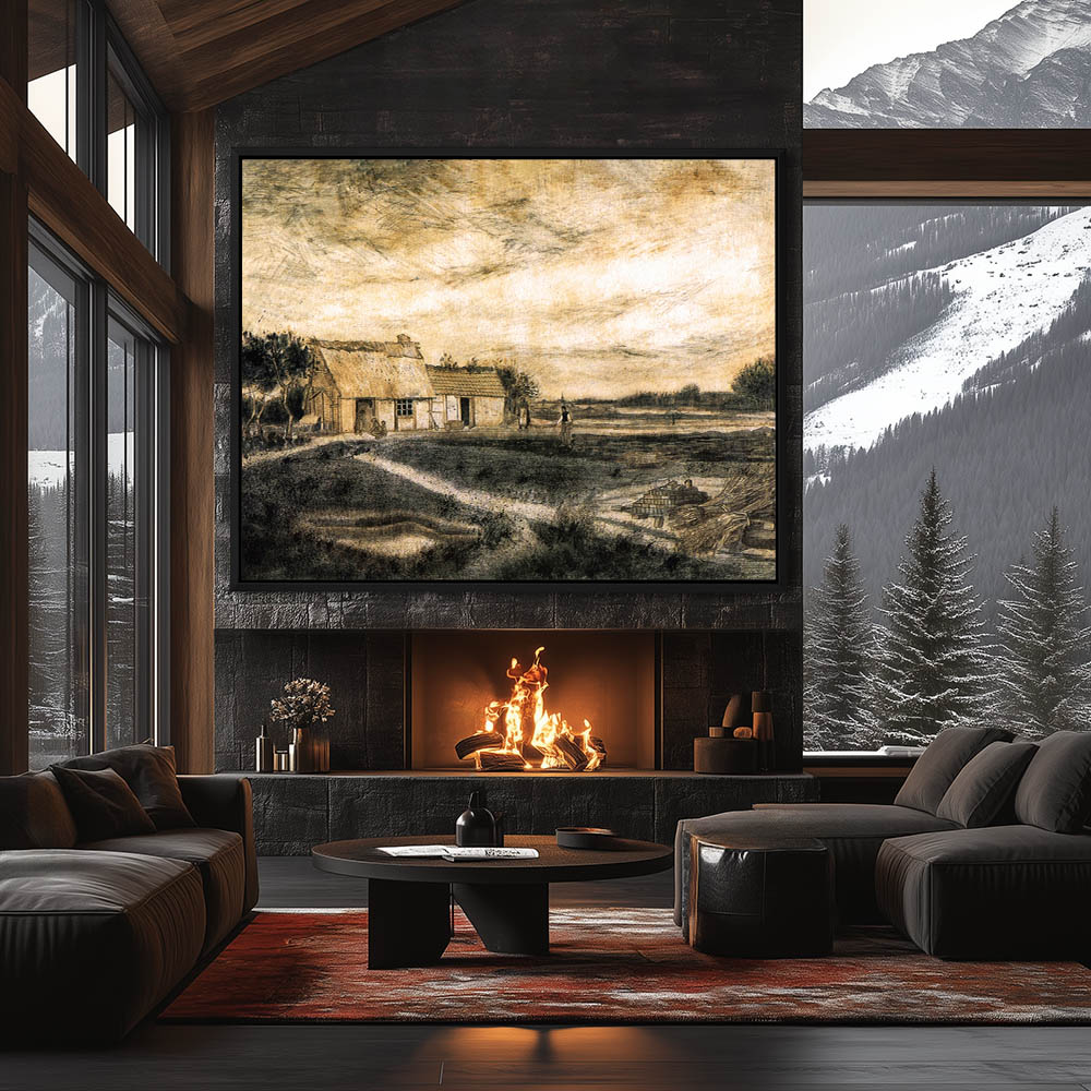 Impressionist Landscape Painting of a Barn with Figures out Front