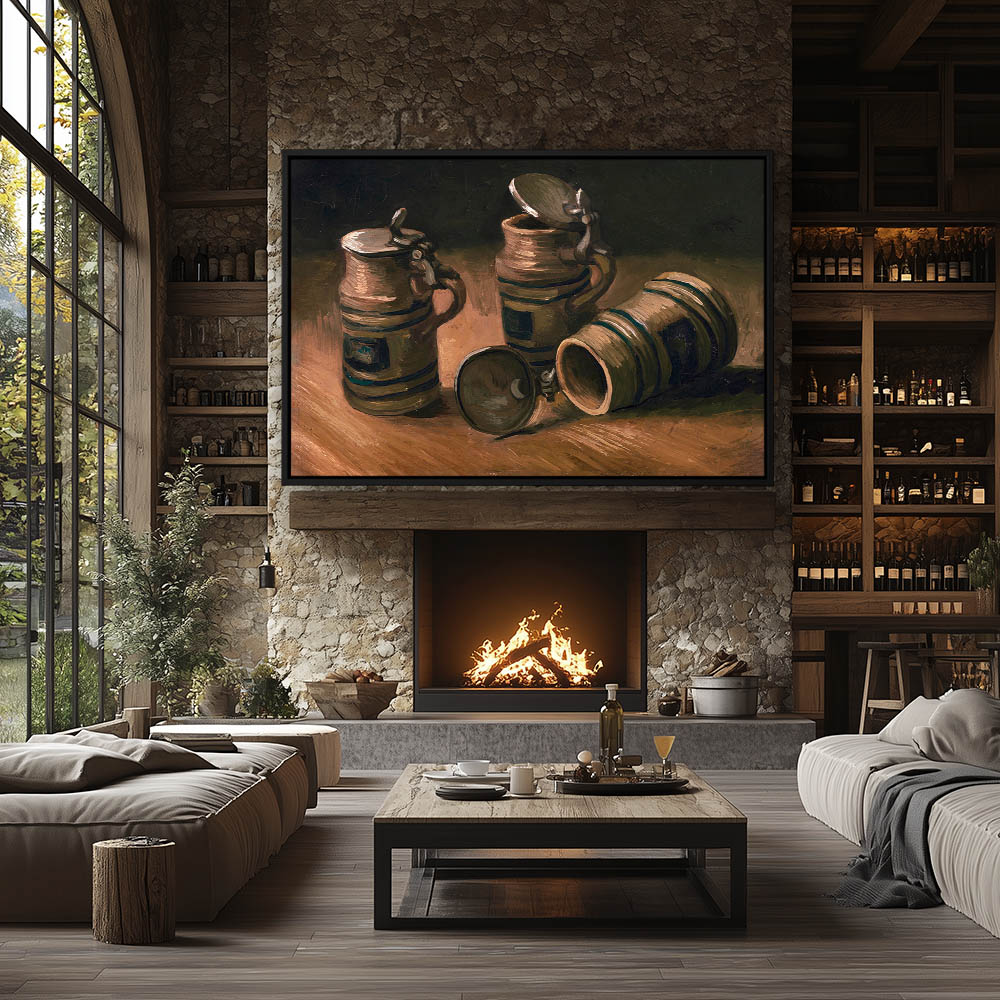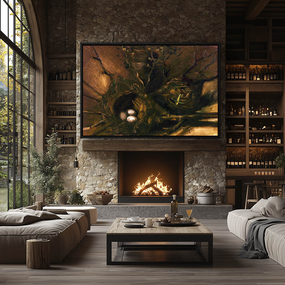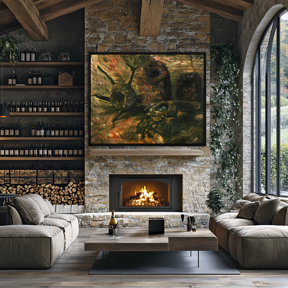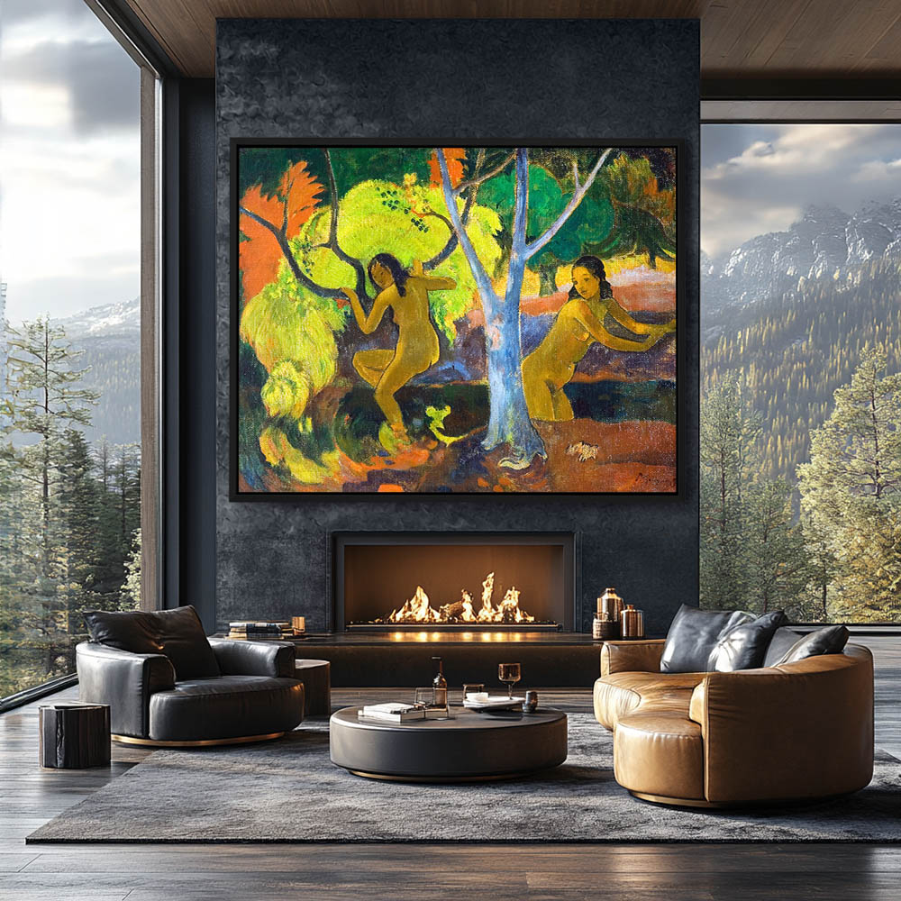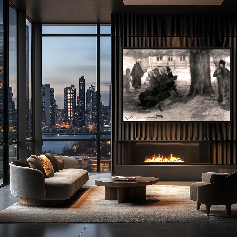 Impressionist Landscape Painting with Figures Resting on a Bench Under a Tree