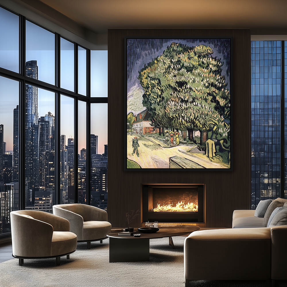 Impressionist Abstract Landscape with Figures Walking the Side Walk