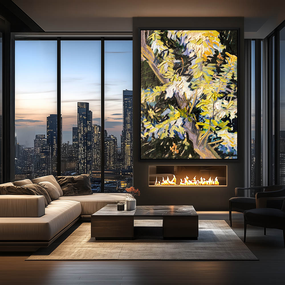 Imressionist Abstract Painting of a Blossoming Acacia Branch