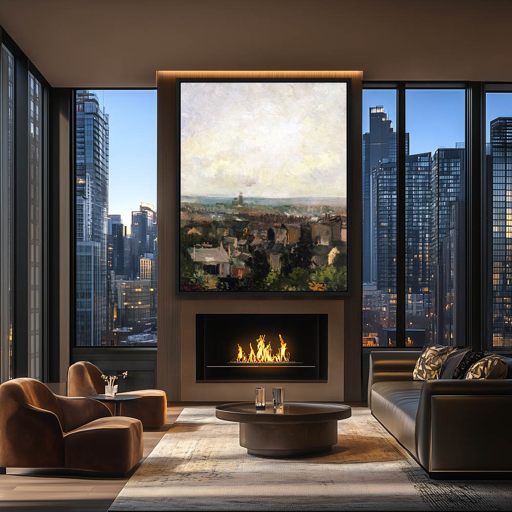 Impressionist Abstract Landscape Painting of the City from the Farmfields