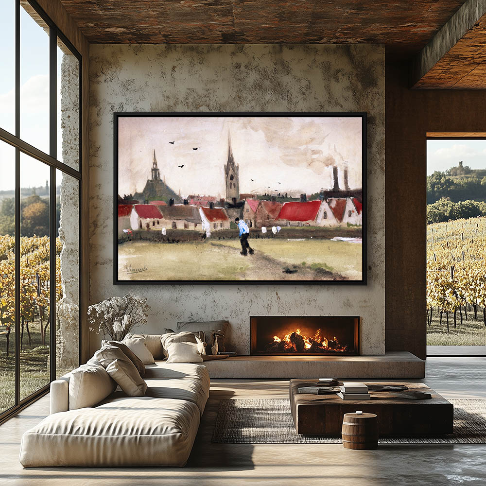 Impressionist Landscape Painting of a Figure on the Outskirts of the City