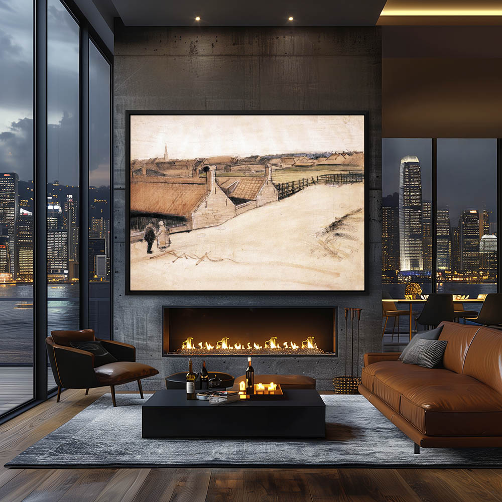 Impressionist Landscape Painting with Figures on the Edge of the City