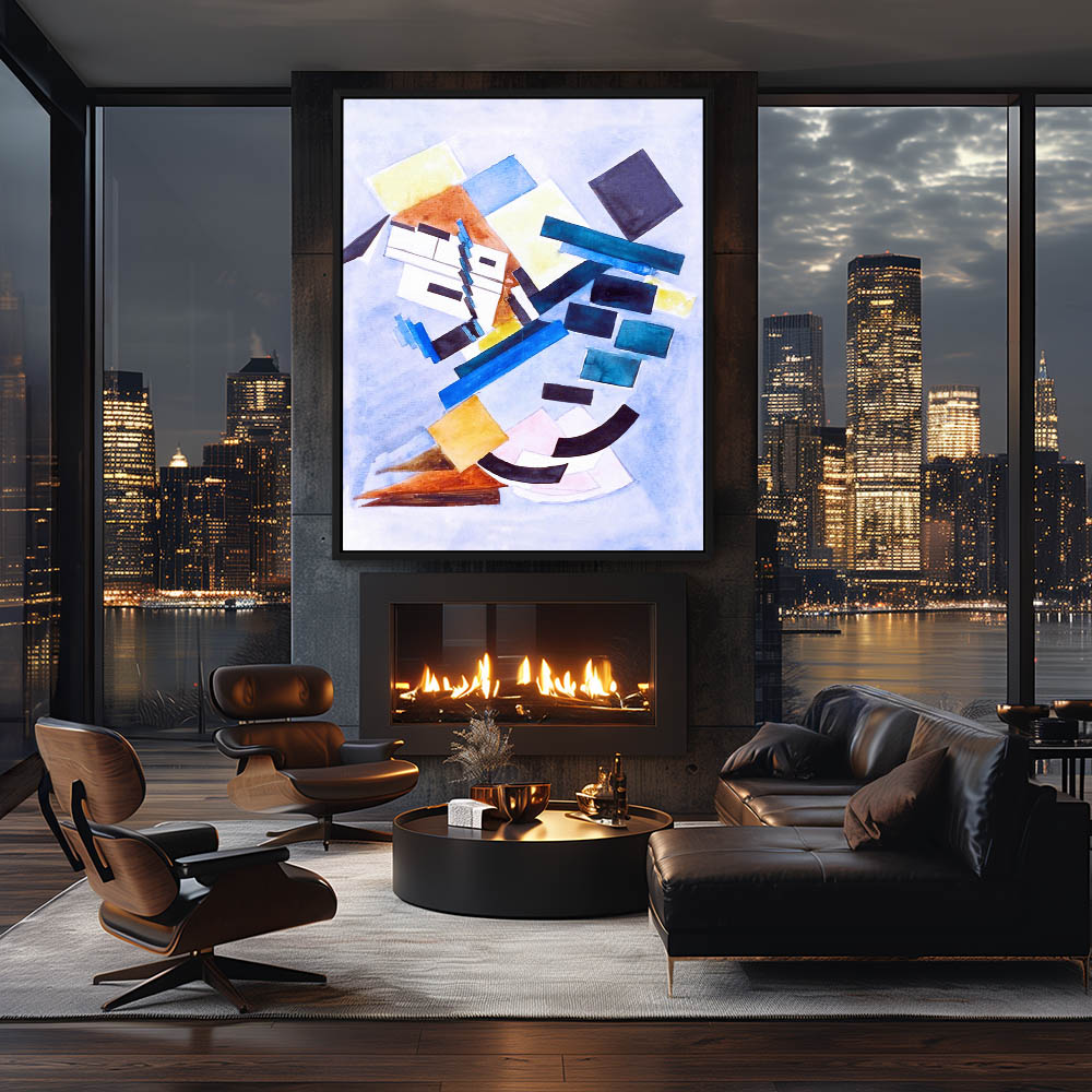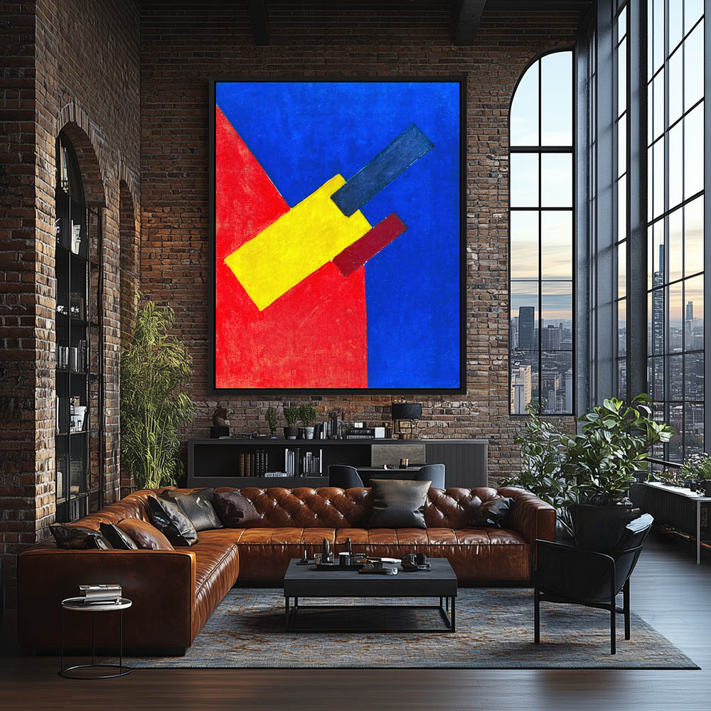 Abstract Non-Objective Composition Painting in Color Blocks for Home Decor, Framed Canvas Wall Decor and Large Metal Wall Art