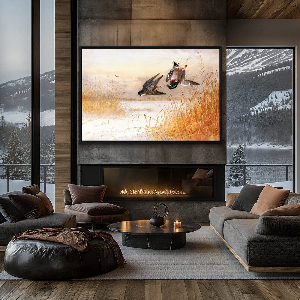 Painting of a Hawk Hunting a Duck