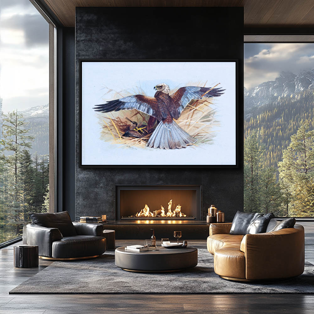 Painting of Masrh Harrier with His Prey a Snipe