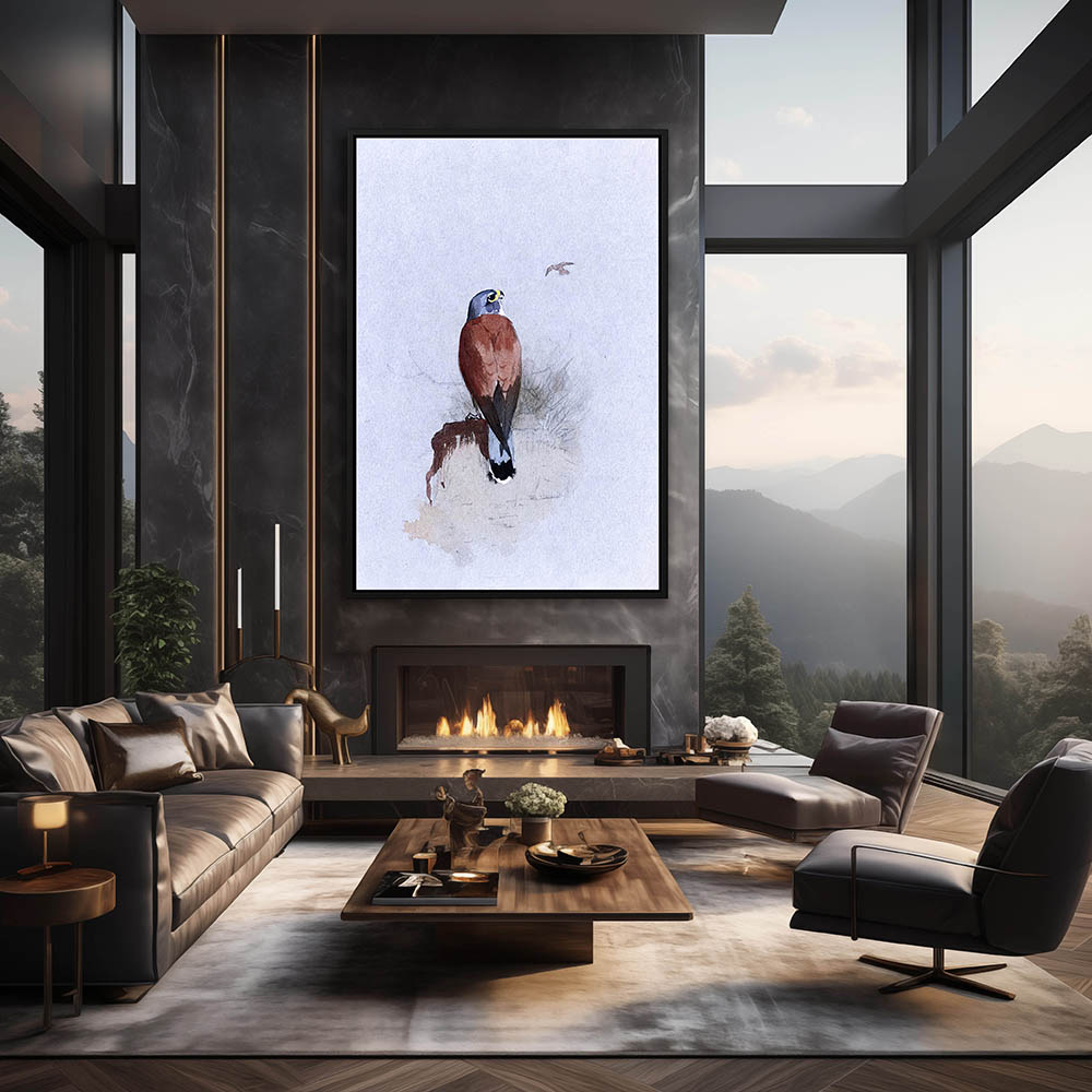 Painting of a Kestrel Bird of Prey Resting on a Rock