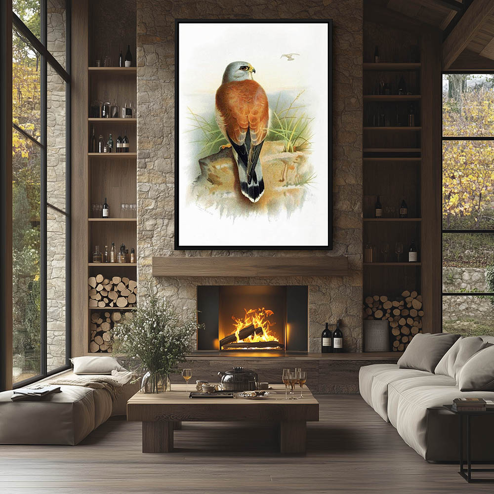 Painting of a Lesser Kestrel Bird of Prey Perched on a Rock