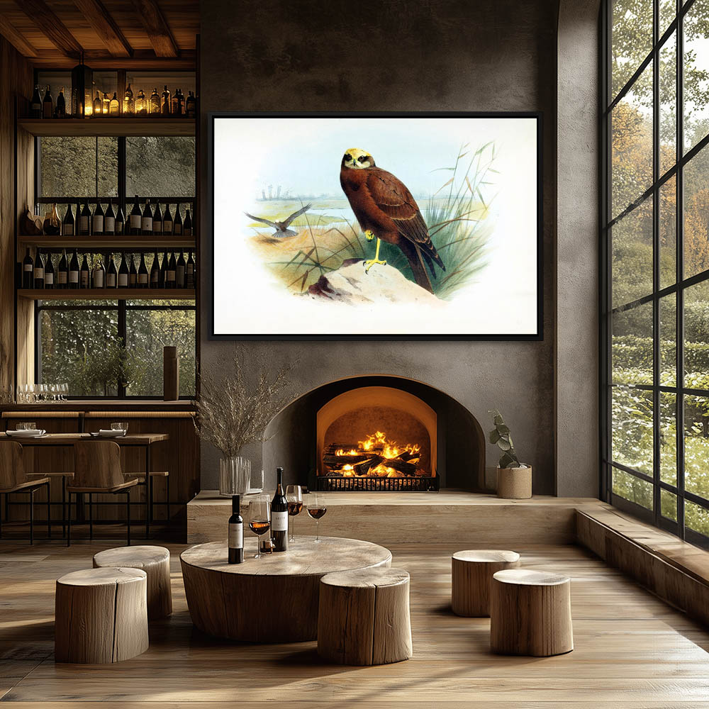 Painting of a Marsh Harrier Bird of Prey Perched on a Rock in the Marsh