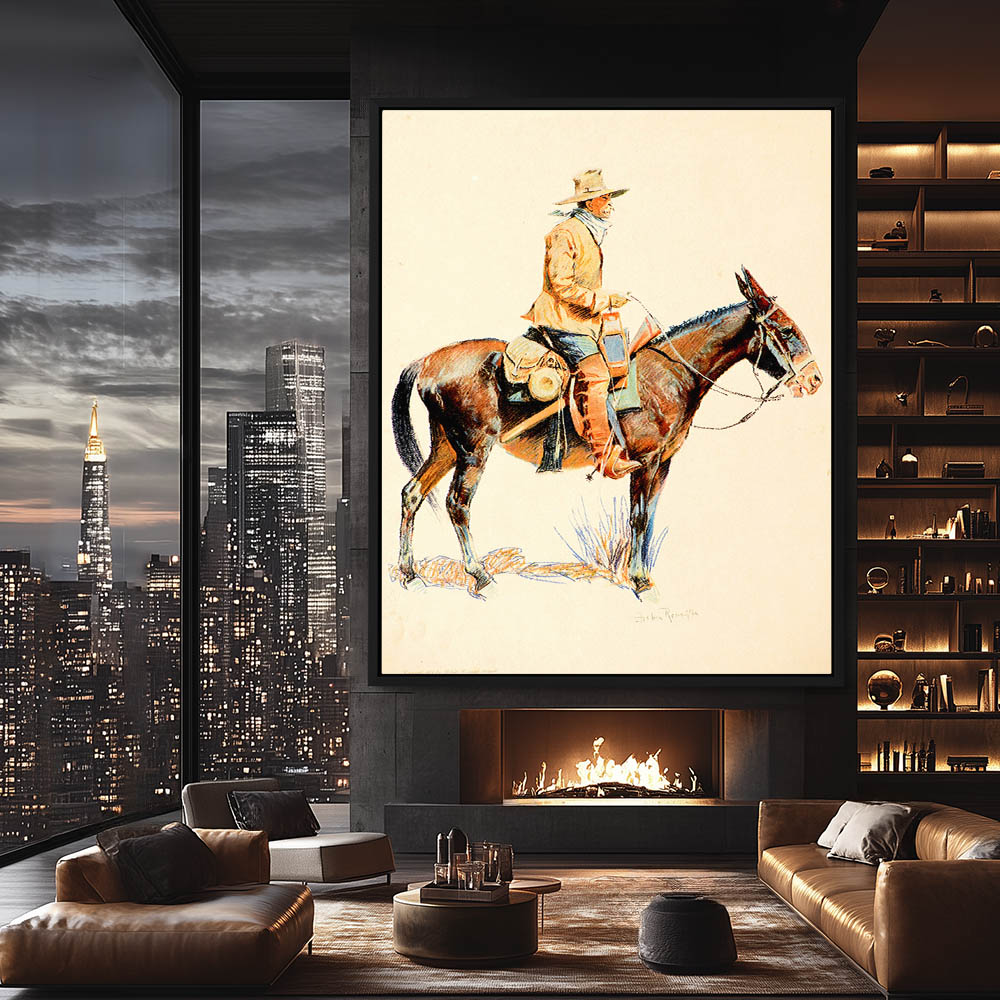Landscape Painting of a Caravan on Horseback on a Mountain Pass