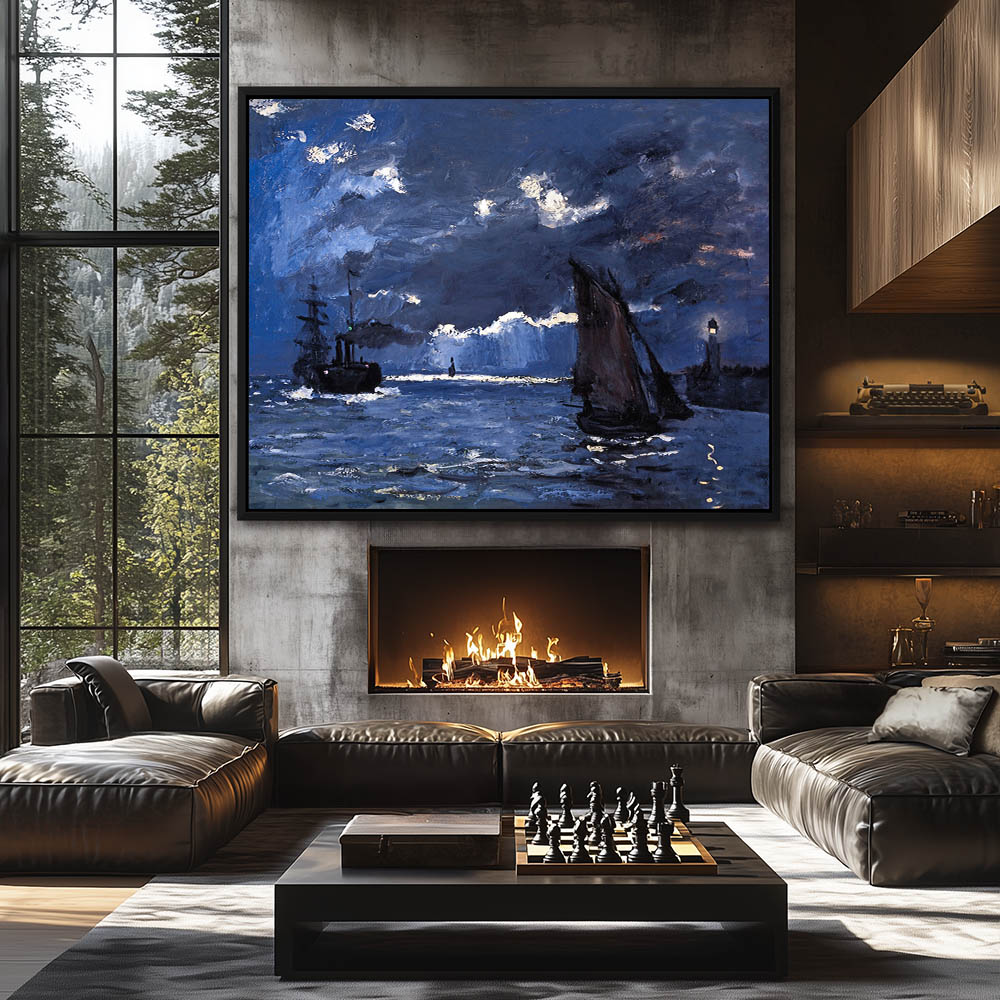 From $31.970 out of 5Vintage Seascape Painting with Sailboats at Sea under the Moonlight