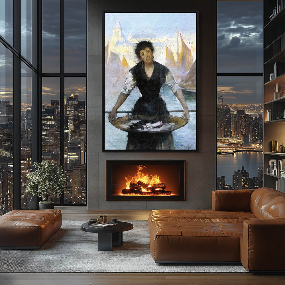 From $29.970 out of 5Figurative Painting with a Female at the Docks with a Basket of Fish with Sail Boats