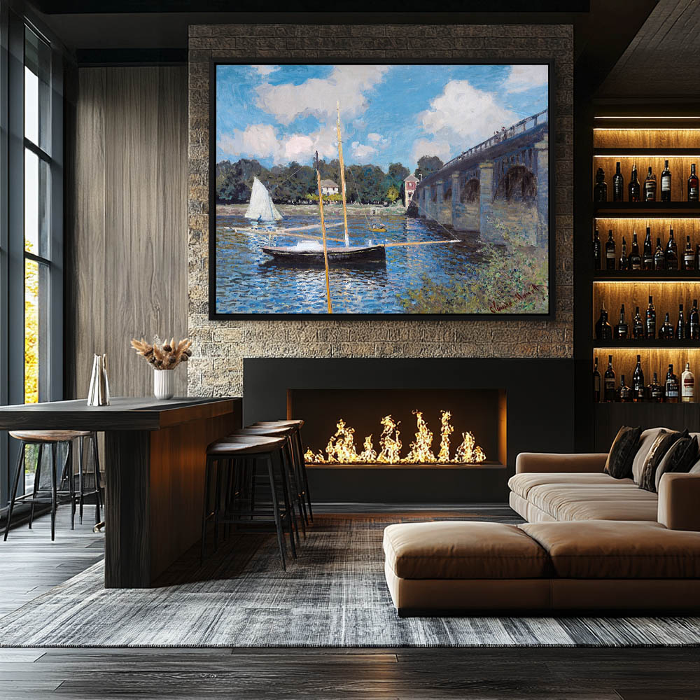 From $29.970 out of 5Vintage River Landscape Painting with a Bridge and Sailboats on the Water