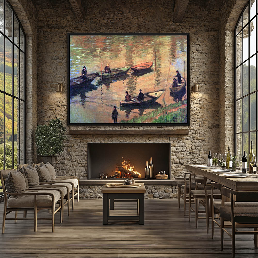 From $29.970 out of 5Vintage River Landscape Painting with Fishermen on the Water in Boats