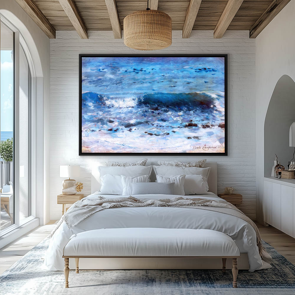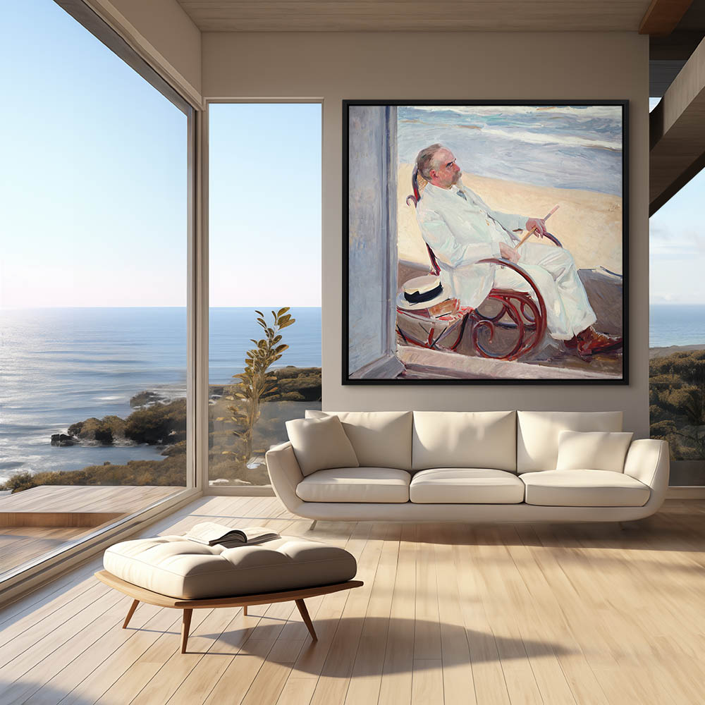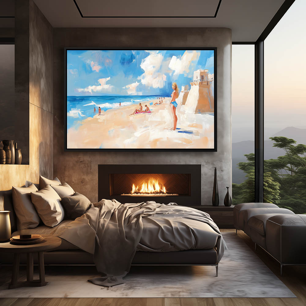 Abstract Coastal Painting with a Woman Sitting on a Beach