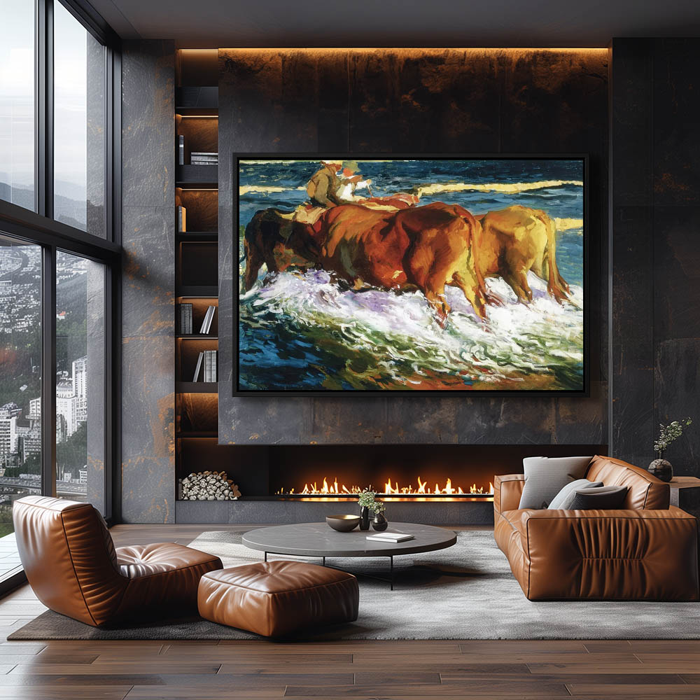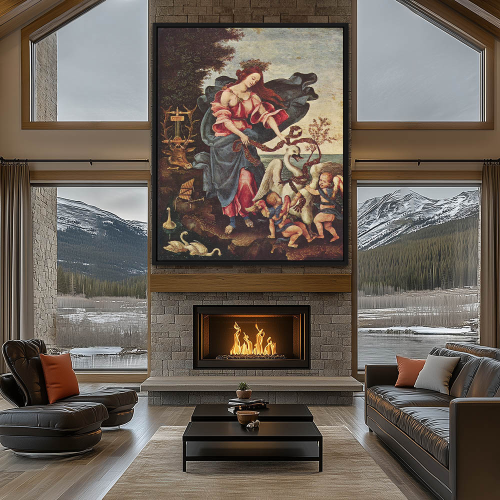Painting of Peregrine Falcons on a Rock Cliff Overlooking the Sea