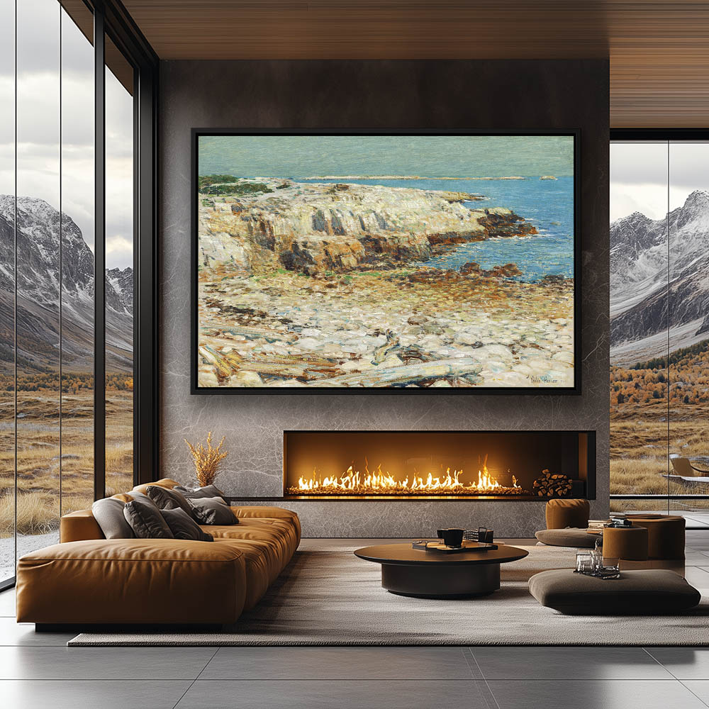 Painting of Seabirds on a Nest in the Rocks on Shore