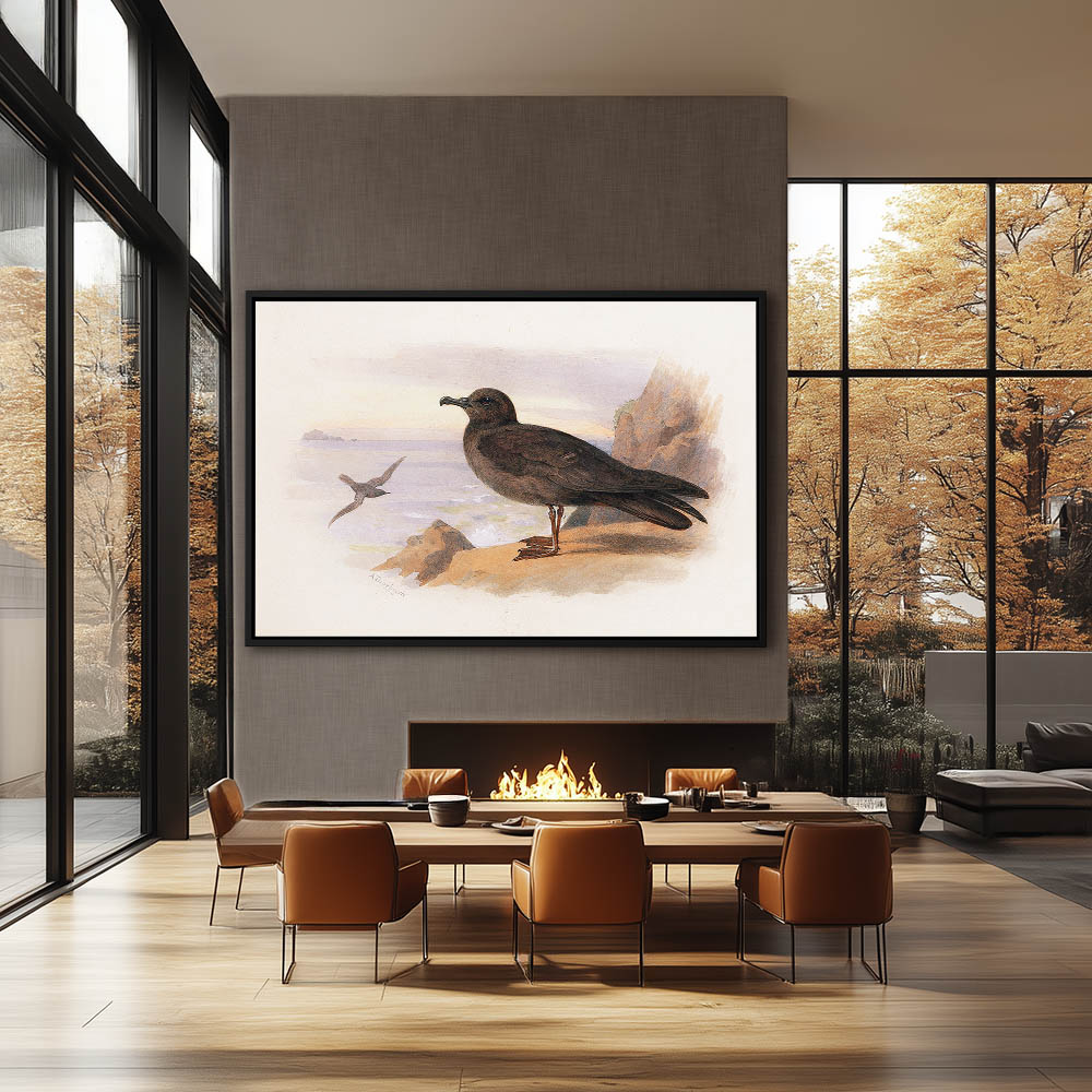 Painting of the Skua Bird Standing on a Rock on the Cliffs on Shore