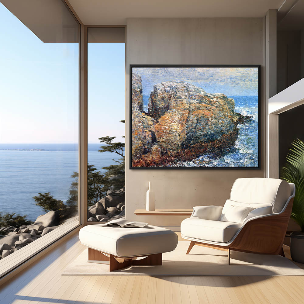 Vintage Seascape Painting with Cliffs on the Shoreline