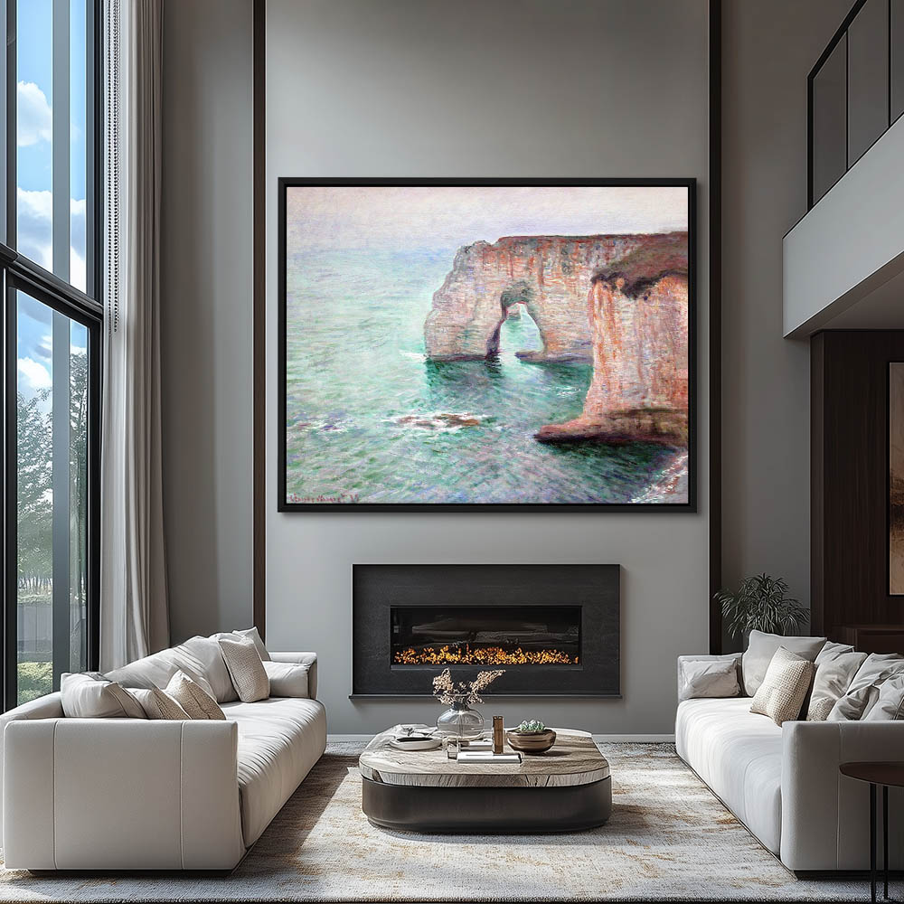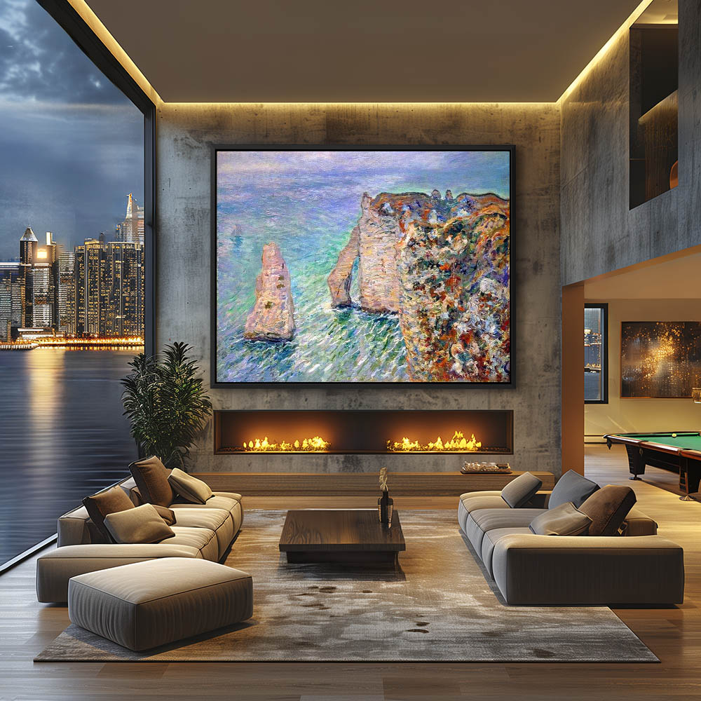 Vintage Seascape Painting with Cliffs on the Shoreline at Porte d’Aval