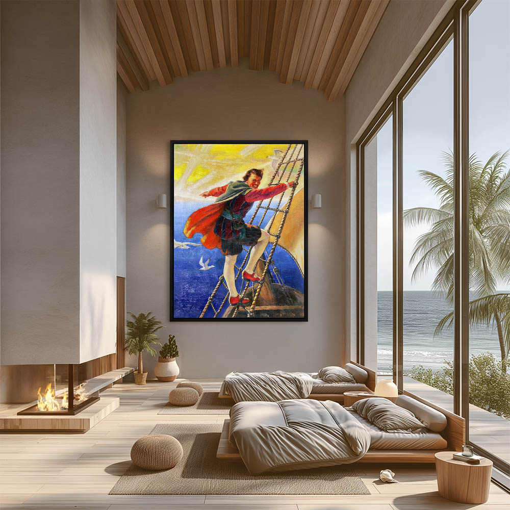 Pirate Climbing Jacobs Ladder to the Sails of the Ship
