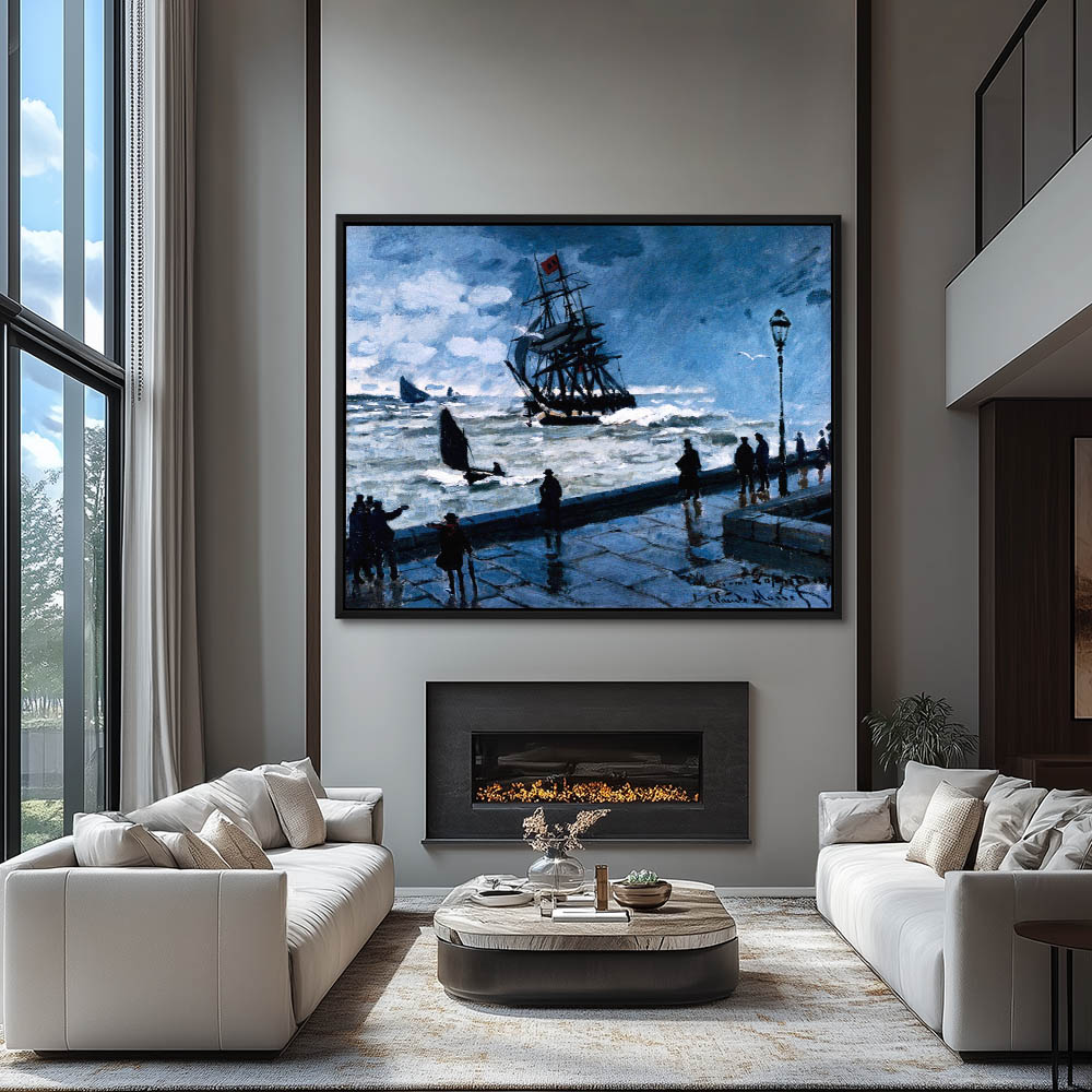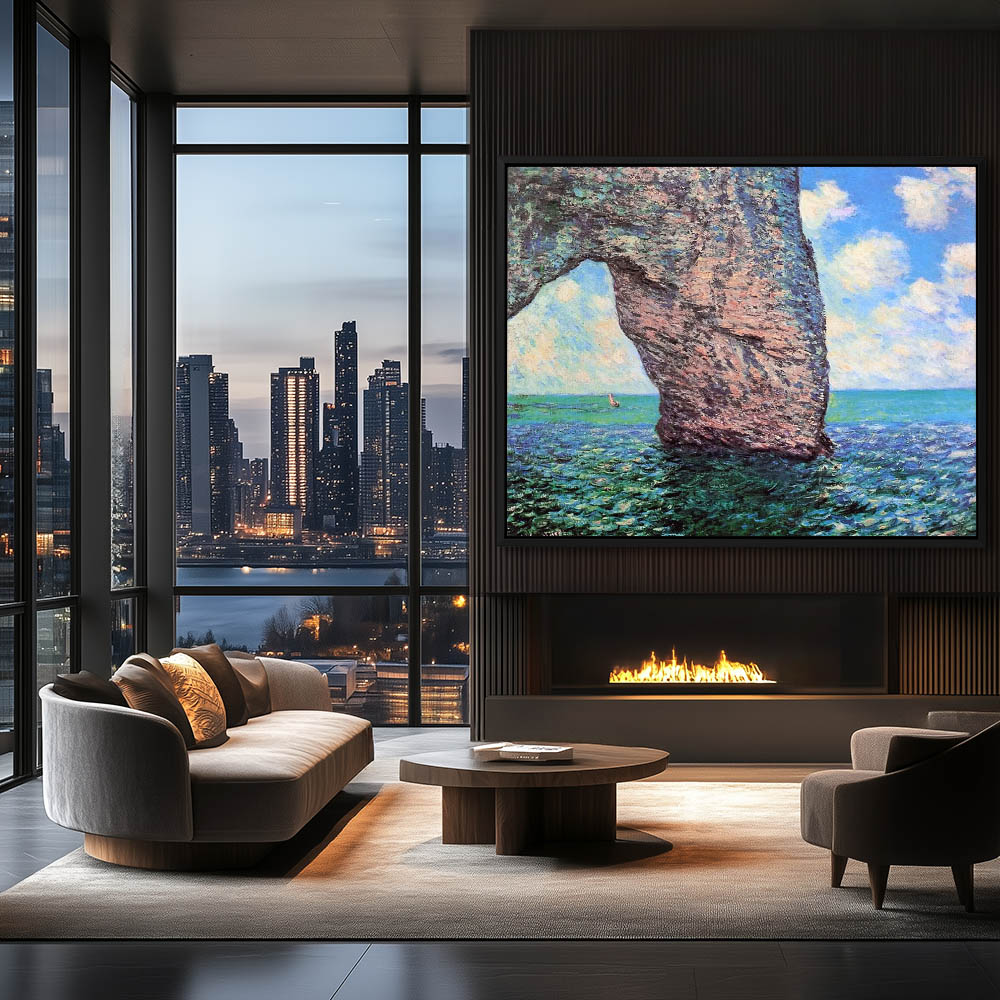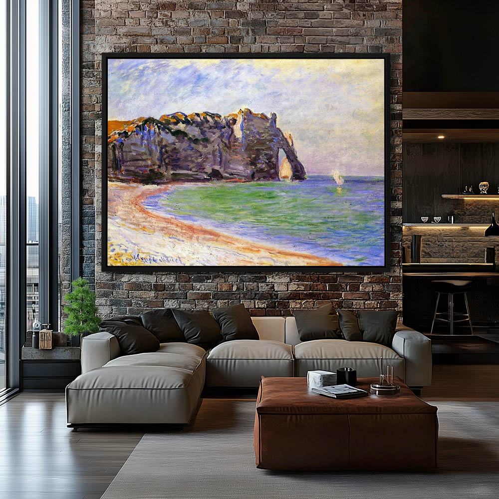 Vintage Seascape Painting with Cliffs on the Shoreline at Porte d’Aval