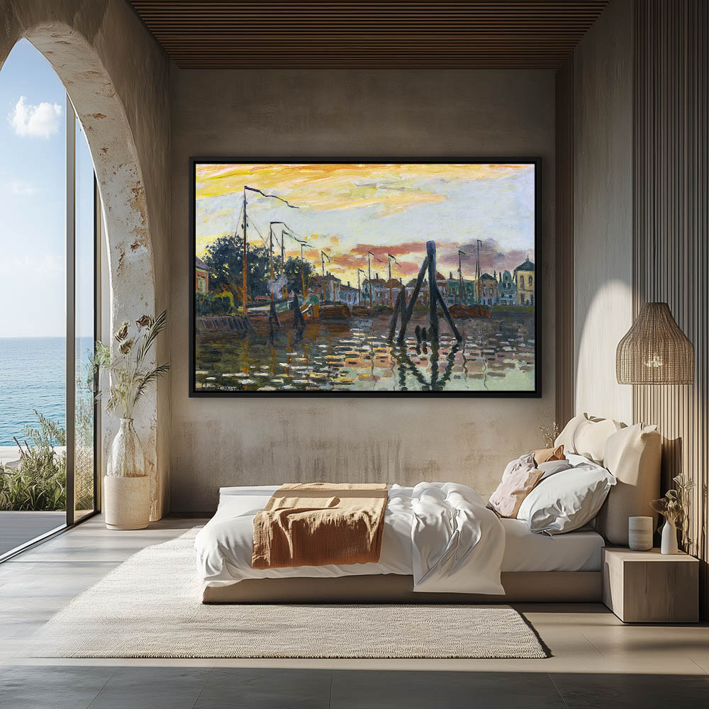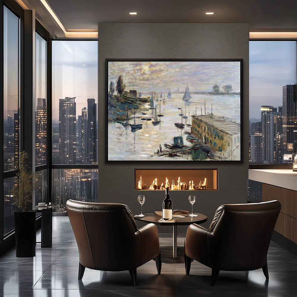Vintage Seascape Painting with Boats in the Water
