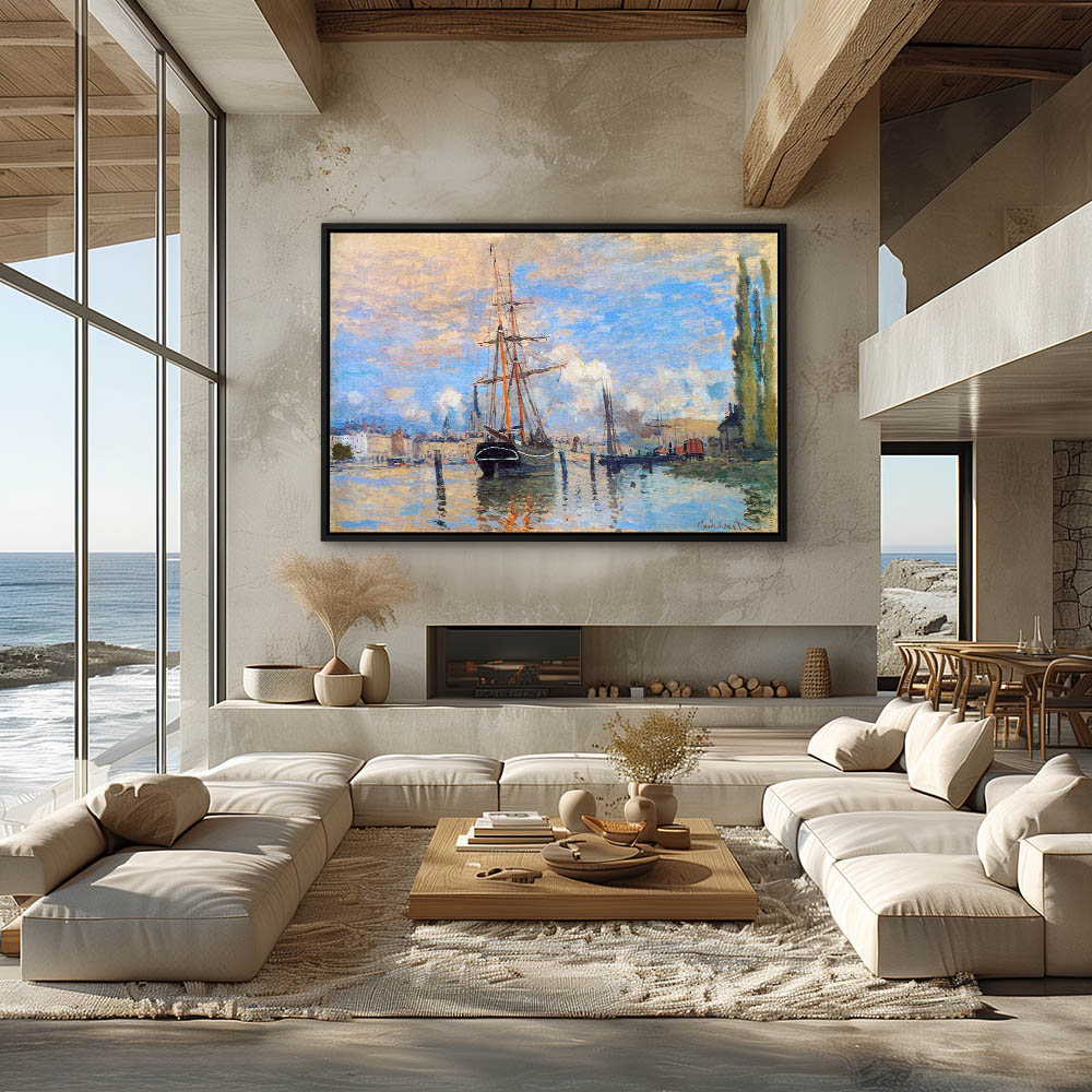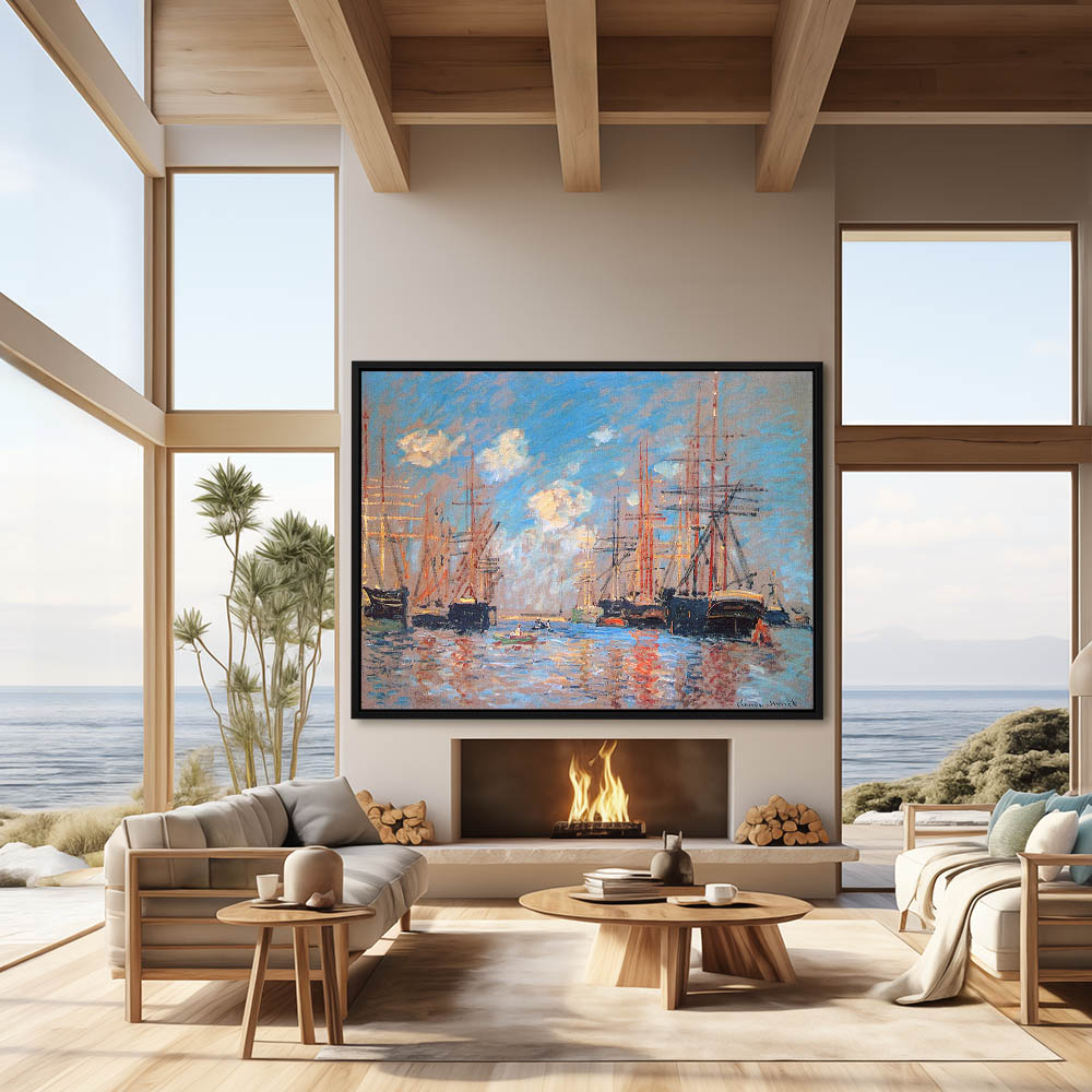 Vintage Seascape Painting with Ships in the Harbor