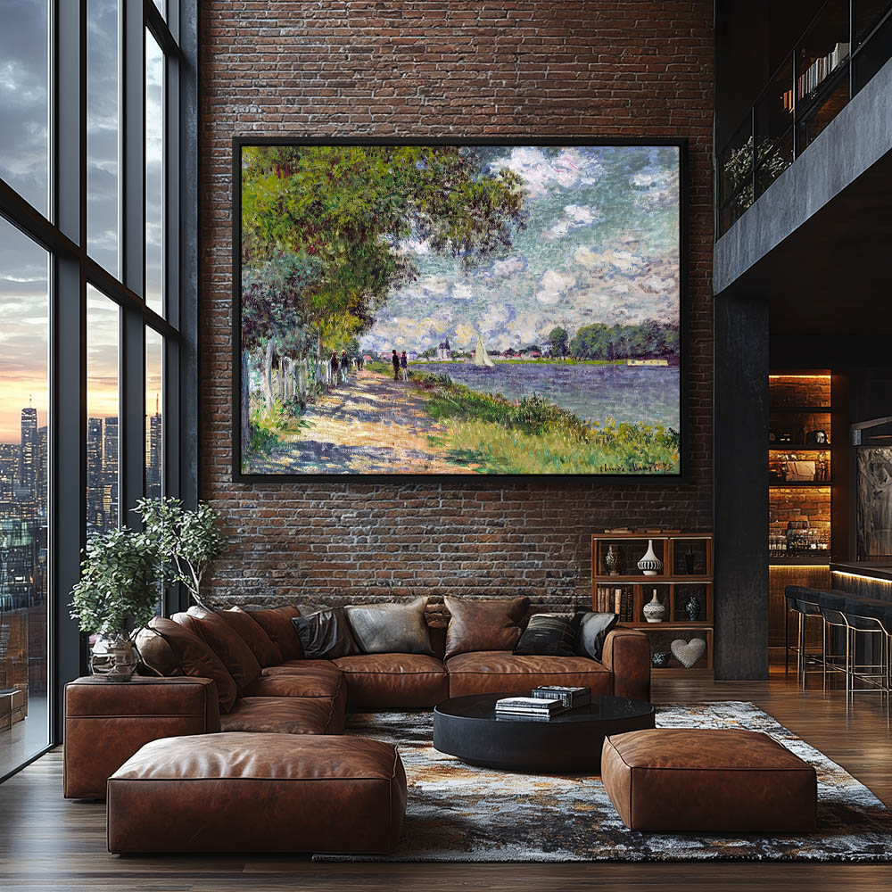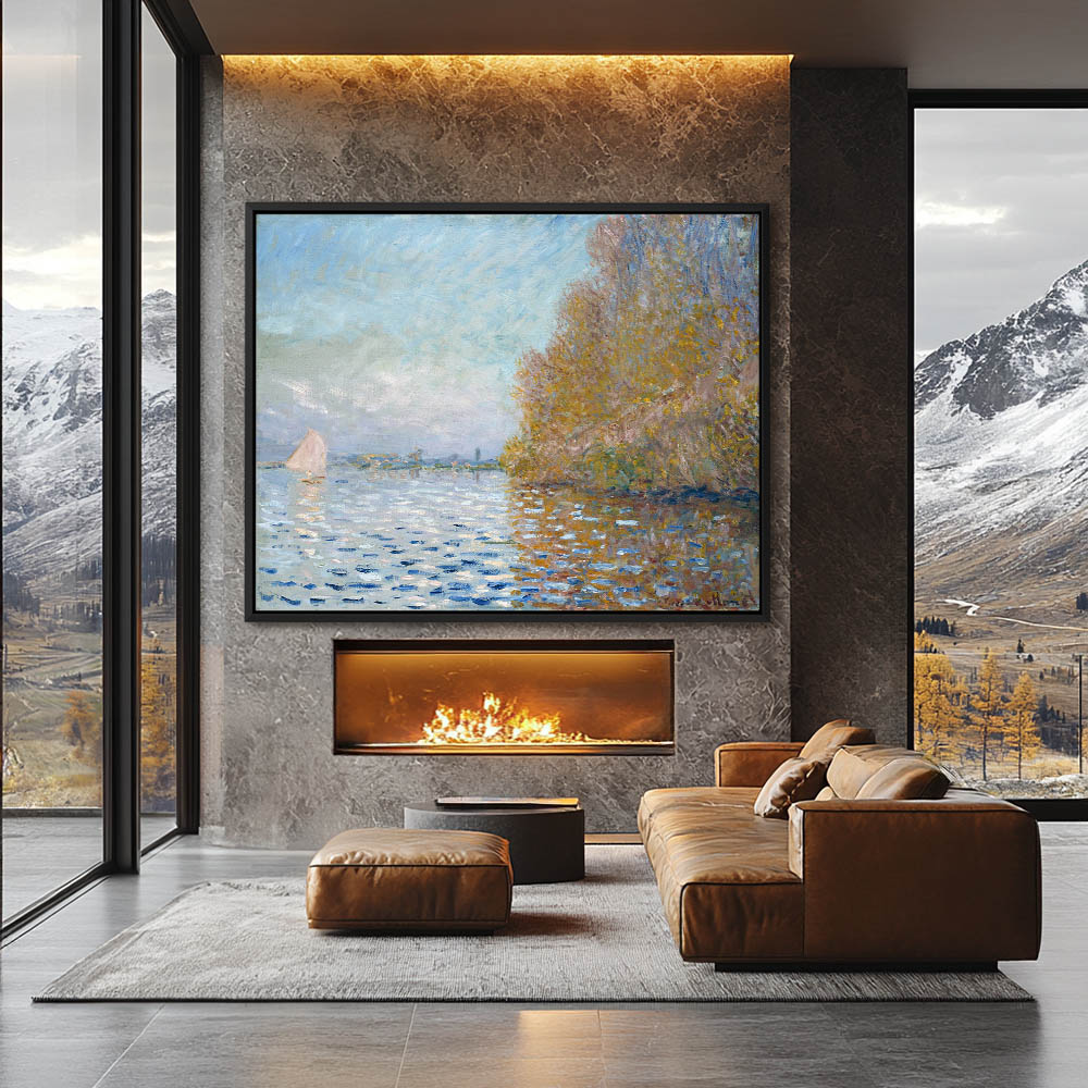Vintage Landscape Painting with a River and Sailboats